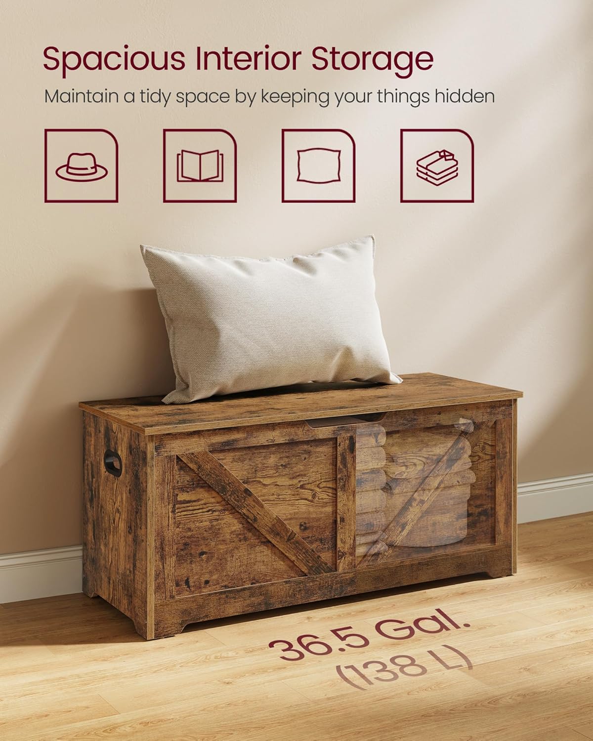 VASAGLE Storage Chest, Storage Trunk with 2 Safety Hinges, Storage Bench, Shoe Bench, Farmhouse Style, 15.7 x 39.4 x 18.1 Inches, for Entryway, Bedroom, Living Room, Rustic Brown ULSB060T01