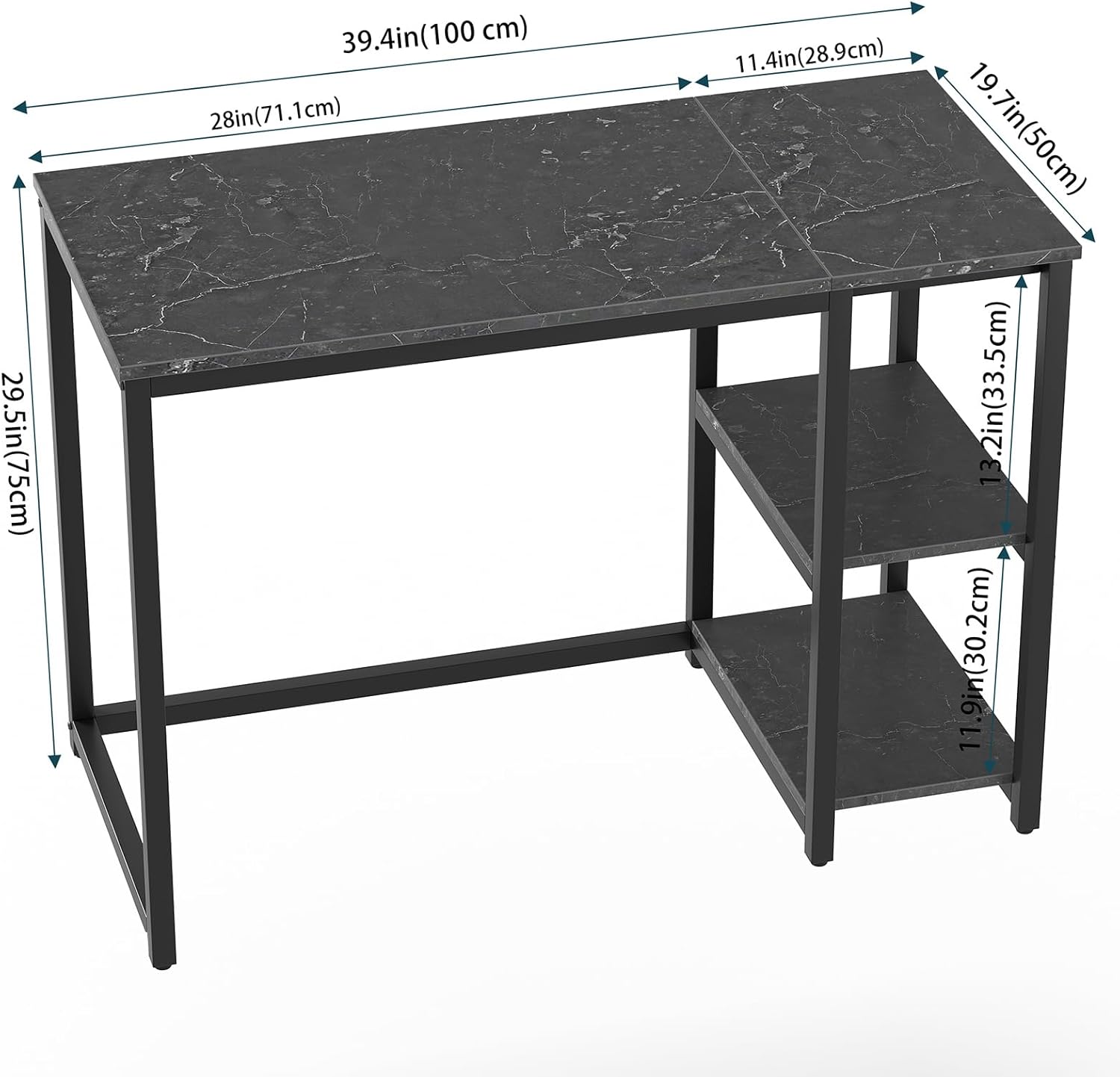 SINPAID Computer Desk 40 inches with 2-Tier Shelves Sturdy Home Office Desks with Large Storage Space Modern Gaming Desk Study Writing Laptop Table, Black Marbling