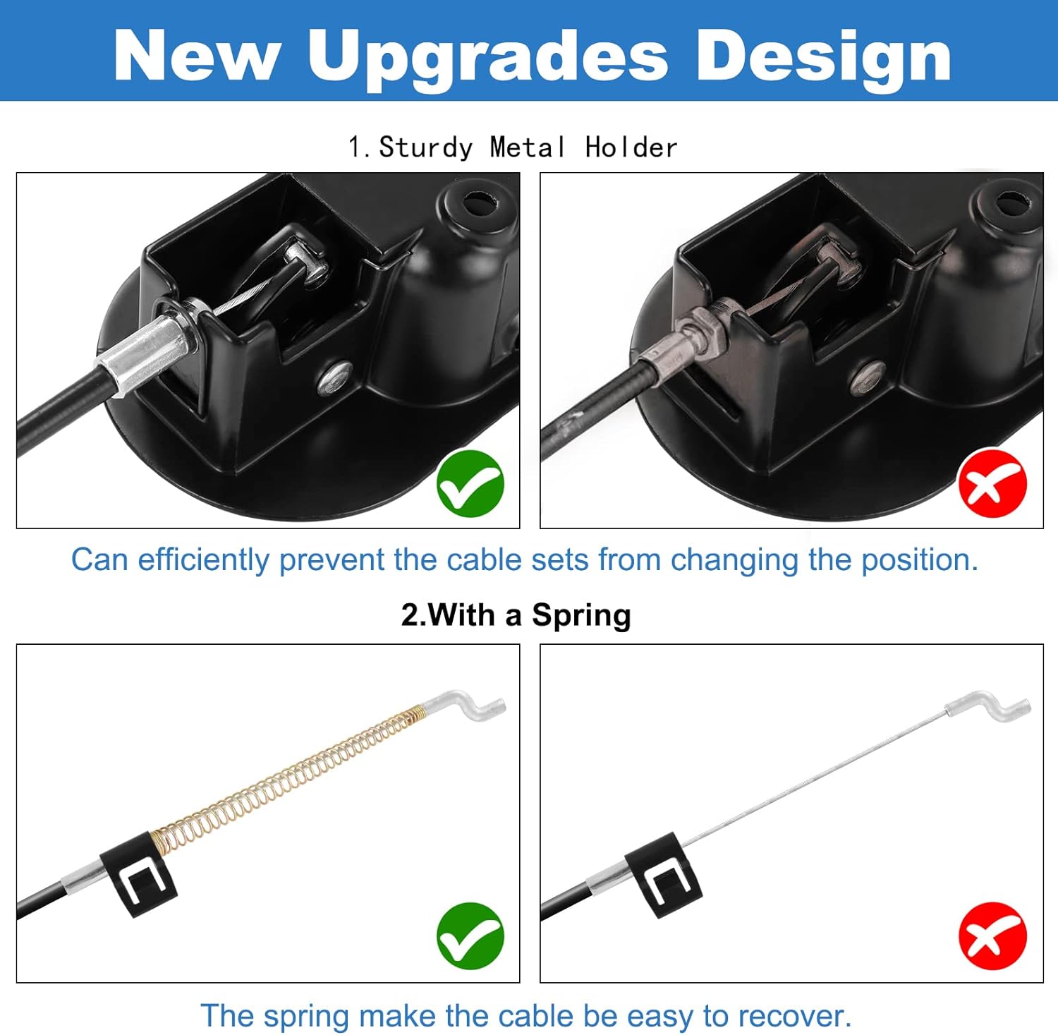 - 2-NEW UPGRADE DESIGN: Add a spring to the end to make the cable get more easily and quickly recover. Add a sturdy metal holder, make the handle connect the cable more firmly and efficiently prevent the cable sets from changing the position.