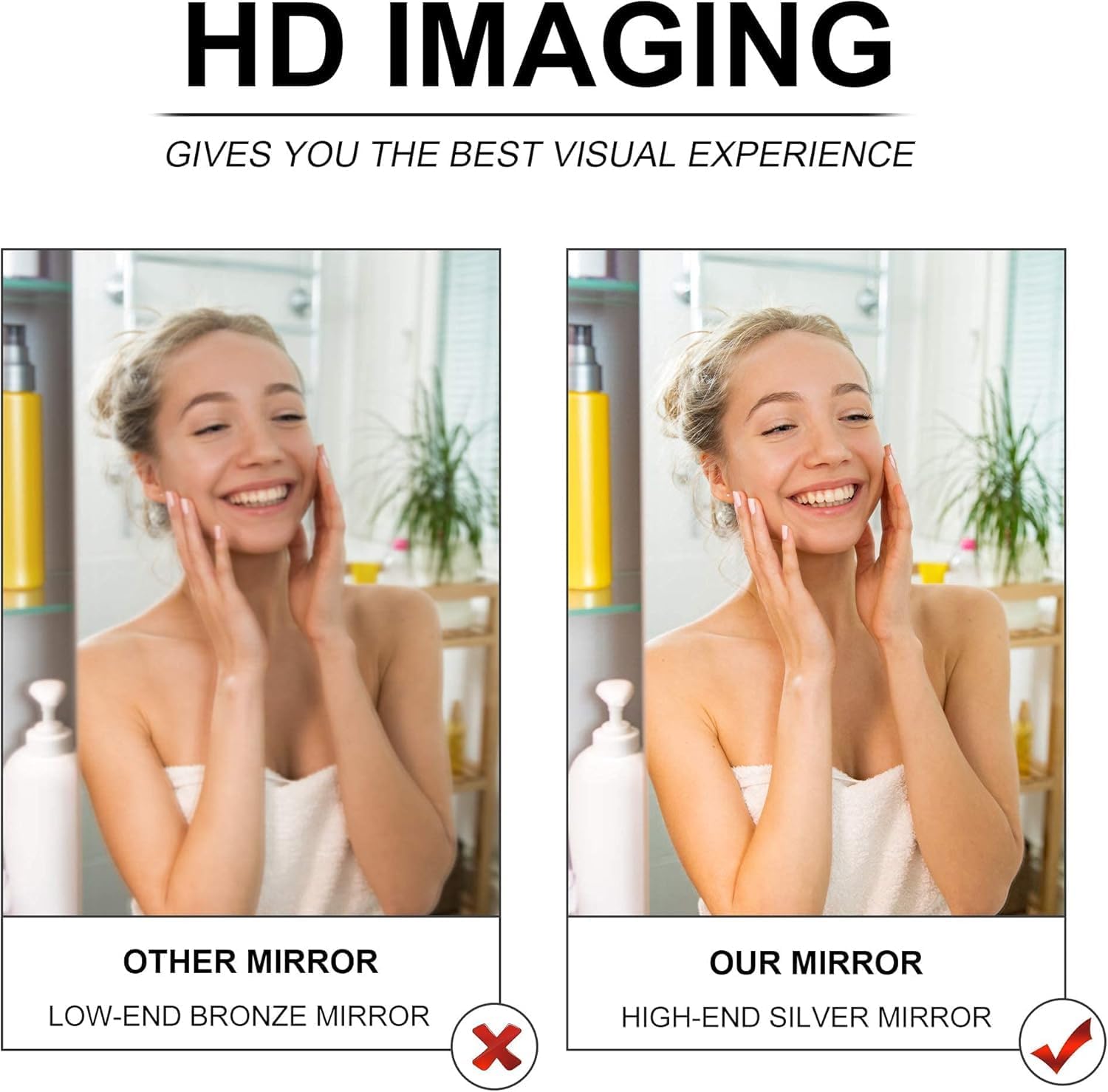 - [High Definition]: Crafted with pure silver backplate and 1/4-inch top glass, the bathroom mirror provides clear crystal reflections with a 1:1 ratio, ensuring no visual distortion. Premium silver backing improves durability in high humidity environments