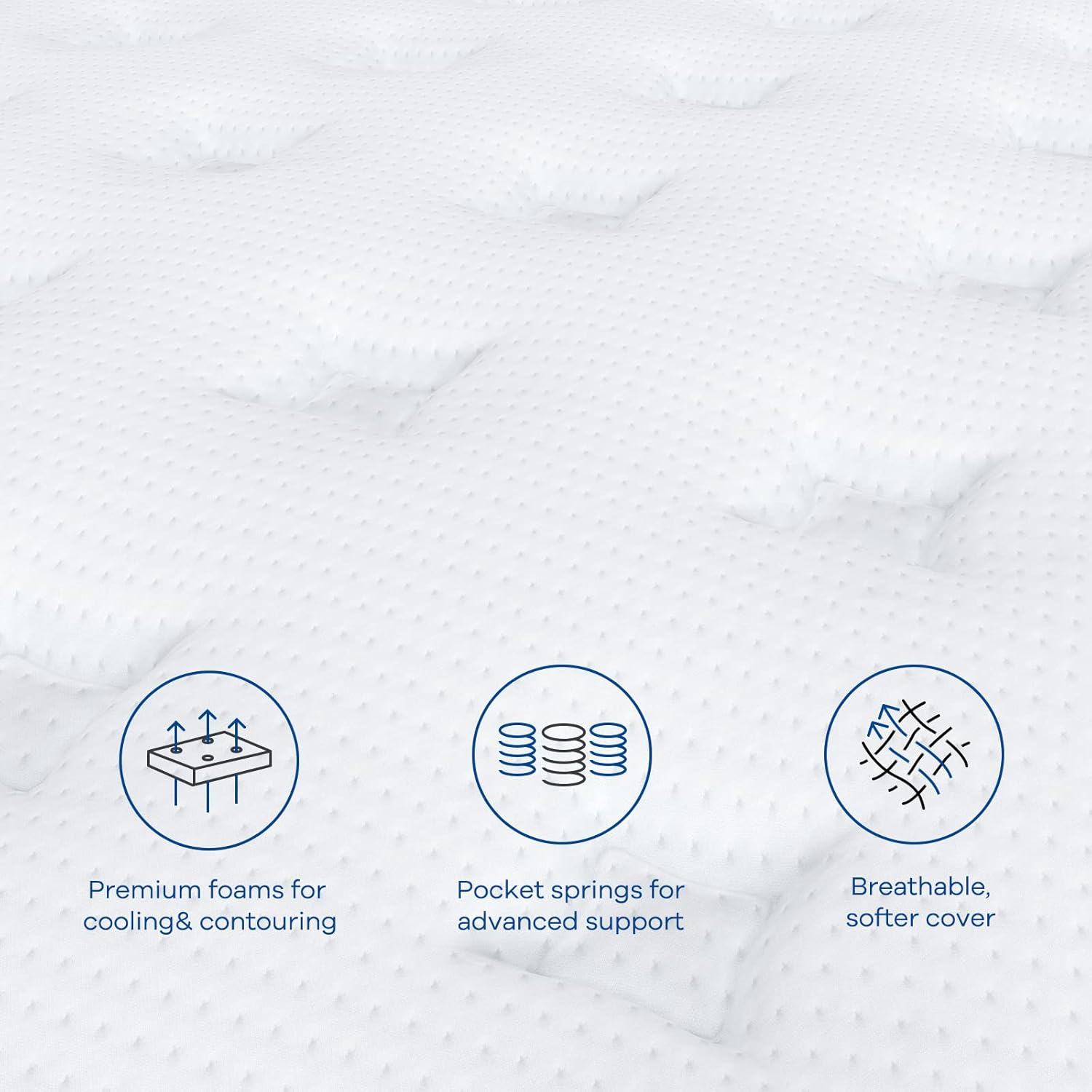 Coolvie 12 Inch Queen Mattress, Hybrid Queen Mattress in a Box, Pocket Springs with Soft Knitted Fabric Cover for a Cool Sleep & Pressure Relief, Medium Firm Feel with Motion Isolation