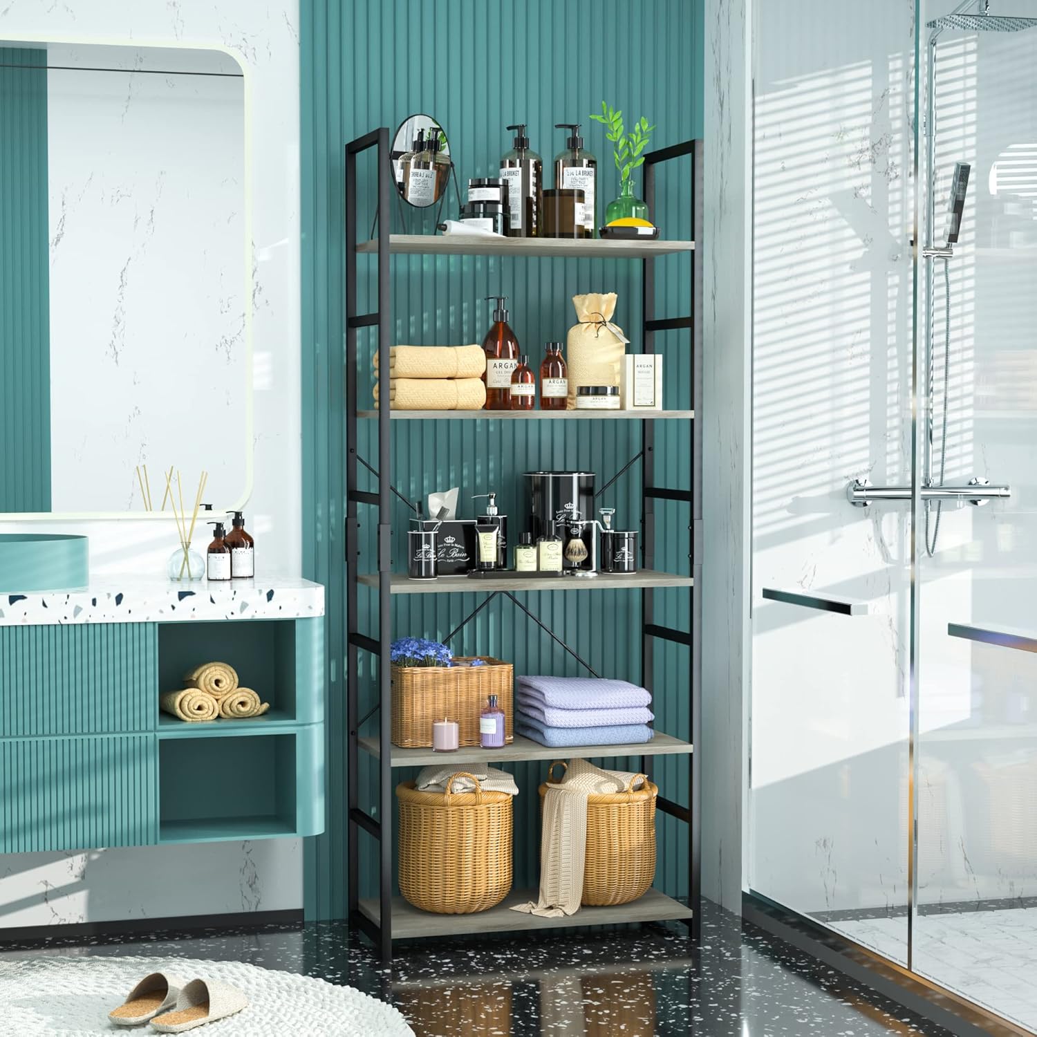 NUMENN 5 Tier Bookshelf, Tall Bookcase Shelf Storage Organizer, Modern Book Shelf for Bedroom, Living Room and Home Office, Grey