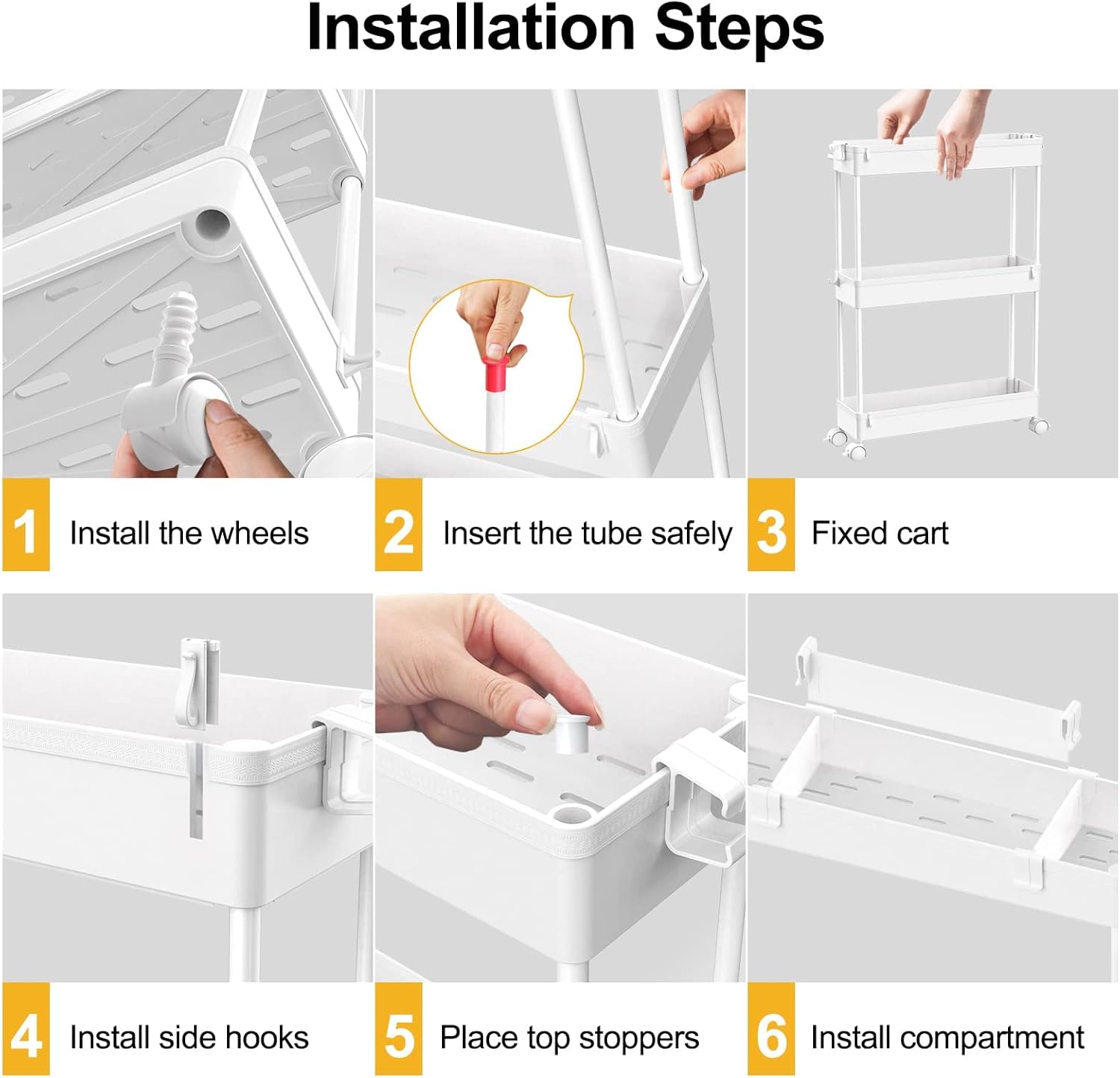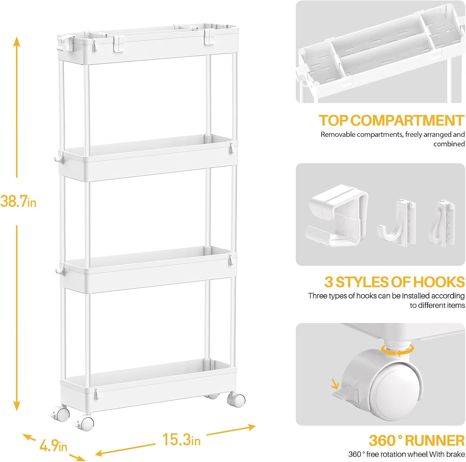 - Flexible Slim Storage Cart: The bathroom rolling utility cart is equipped with 360°rotating wheels, the storage cart can be moved to any corner of the house to store items. You can flexibly use it for storage in office, bathroom, laundry room, kitchen, narrow places,etc