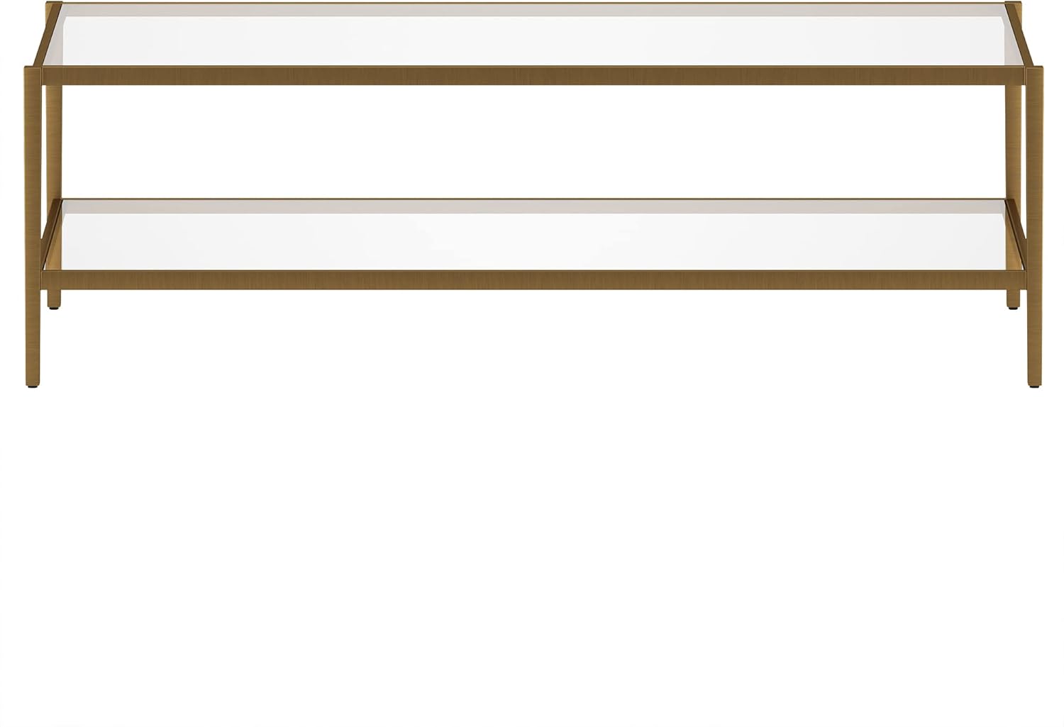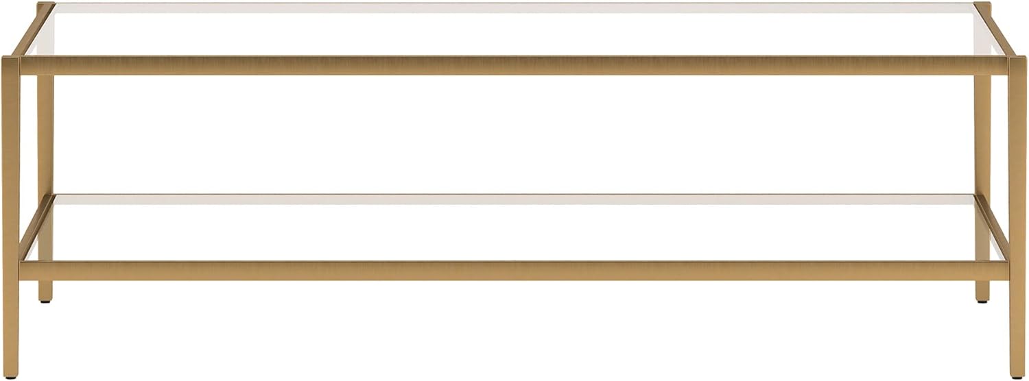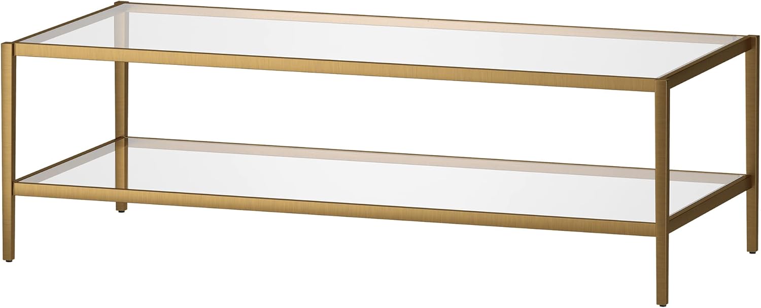 Henn&Hart 54" Wide Rectangular Coffee Table with Glass Shelf in Antique Brass, Modern coffee tables for living room, studio apartment essentials