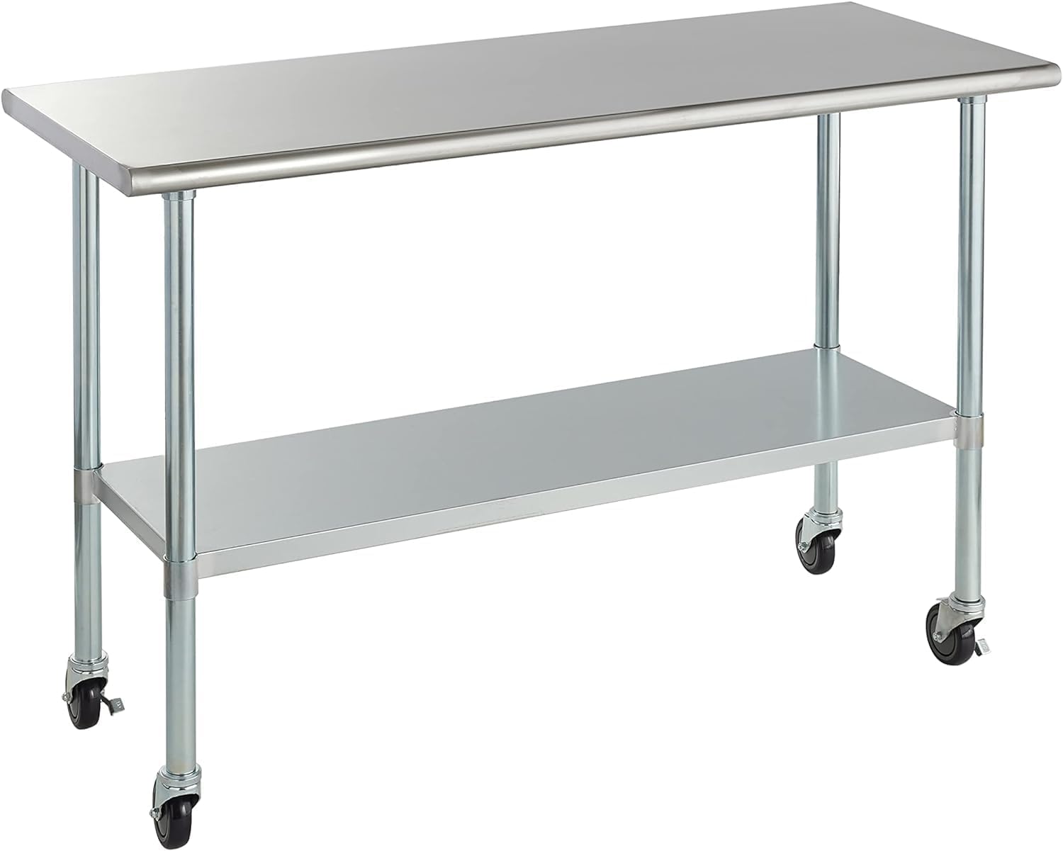 ROCKPOINT Stainless Steel Table for Prep & Work with Caster Wheels 24x60 Inches, NSF Metal Commercial Kitchen Heavy Duty Table with Adjustable Under Shelf and Table Foot for Restaurant, Home and Hotel