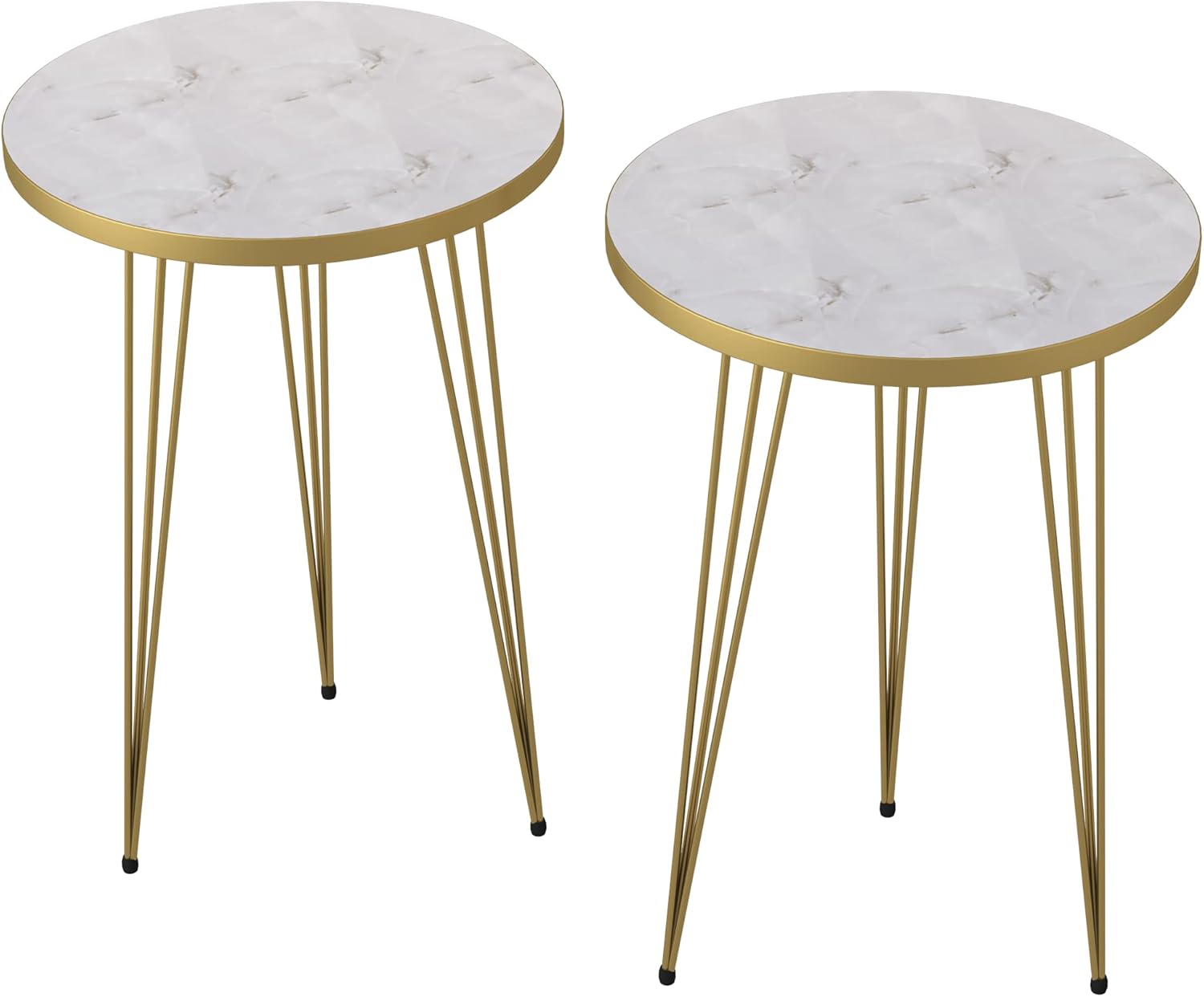 PAK HOME - Set of 2 End Table - High Gloss White Marble Look with Gold Metal Legs Round Wood Sofa Side Coffee Tables for Small Spaces, Nightstand Bedside Table for Bedroom, Living Room