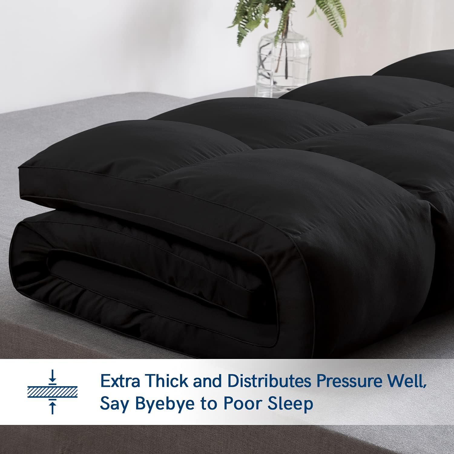 - 【PREMIUM MATERIAL&SOFT FILLING】Tightly woven and thin brushed microfiber fabric is exceptionally soft, breathable and comfortable. It's also durable, no risk being ripped even with frequently washing. Compared with traditional mattress topper, it's double filled with 3D snow down alternative filling, enough soft, plush and warm. Materials are clean, helps diminish the negative outcomes of a person who has sensetive skin.