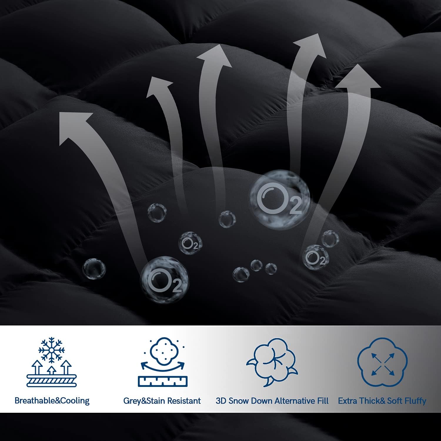 - 【PREMIUM MATERIAL&SOFT FILLING】Tightly woven and thin brushed microfiber fabric is exceptionally soft, breathable and comfortable. It's also durable, no risk being ripped even with frequently washing. Compared with traditional mattress topper, it's double filled with 3D snow down alternative filling, enough soft, plush and warm. Materials are clean, helps diminish the negative outcomes of a person who has sensetive skin.