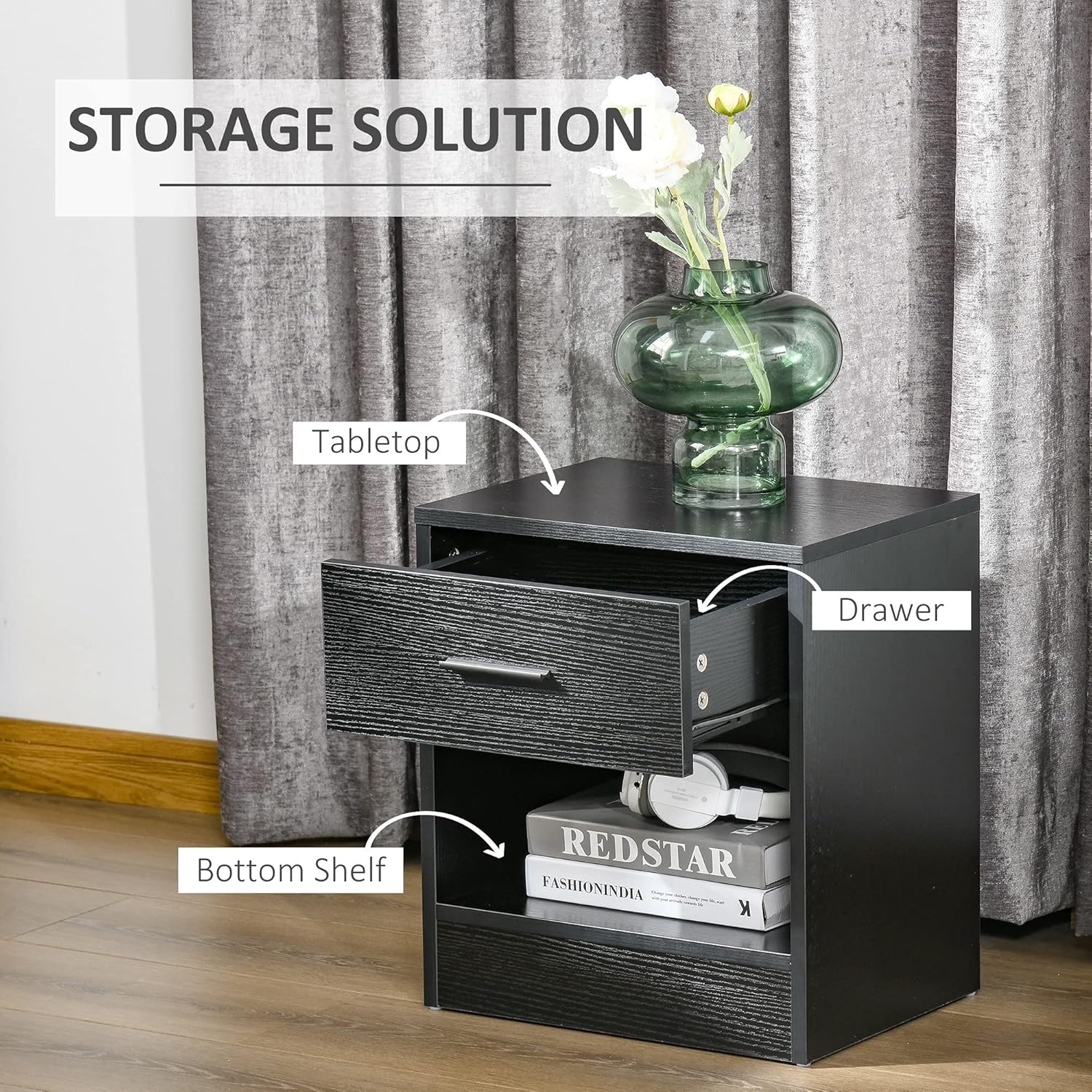 HOMCOM Modern Accent End Table with Drawer and Storage Shelf, Sofa Side Table for Living Room, Black Wood Grain