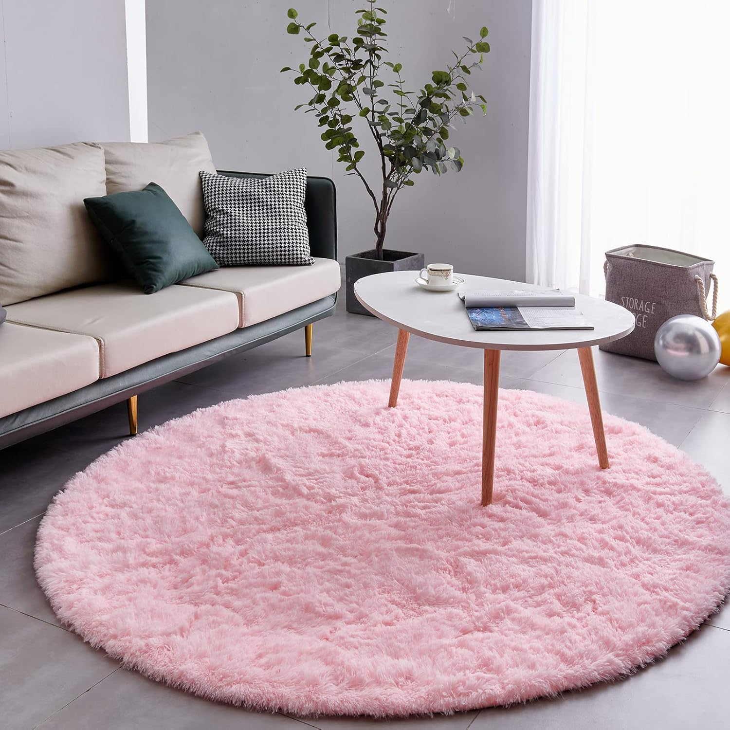 FJZFING Pink Round Rug Ultra-Soft Plush Modern 6x6 Circle Area Rug for Kid's Bedroom, Fluffy Shag Circular Rug for Nursery Room, Non-Slip Home Decor Cute Pink Carpet for Teen's Room
