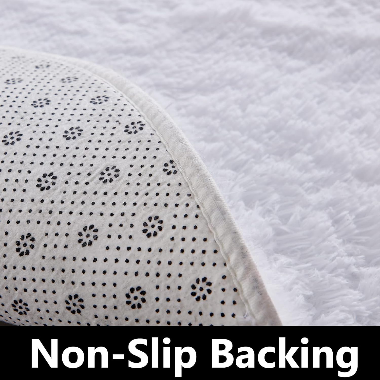 FJZFING White Round Rug Ultra-Soft Plush Modern 7x7 Circle Area Rug for Kid's Bedroom, Fluffy Shag Circular Rug for Nursery Room, Non-Slip Home Decor Cute White Carpet for Teen's Room
