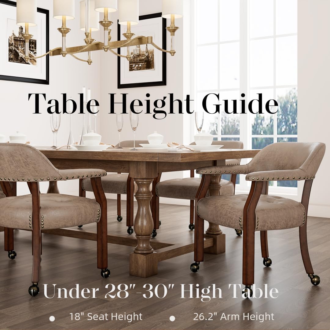 - Perfect Large Dining Chairs: With 20.9"Dx20.7"Wx18"H perfect seat size and height, it feels wonderful leaning back and your feet reach the floor. With 26.2" arms height, the dining chair with casters fits well under American standard 28"-30" H kitchen dining tables. Overall measure: 26“Dx25.2"Wx31.5“H. The soft-touch suede-like fabric surface is super resistant to serve for a long time with breathable; sweat-absorbent and dustproof; dirt-resistant features.