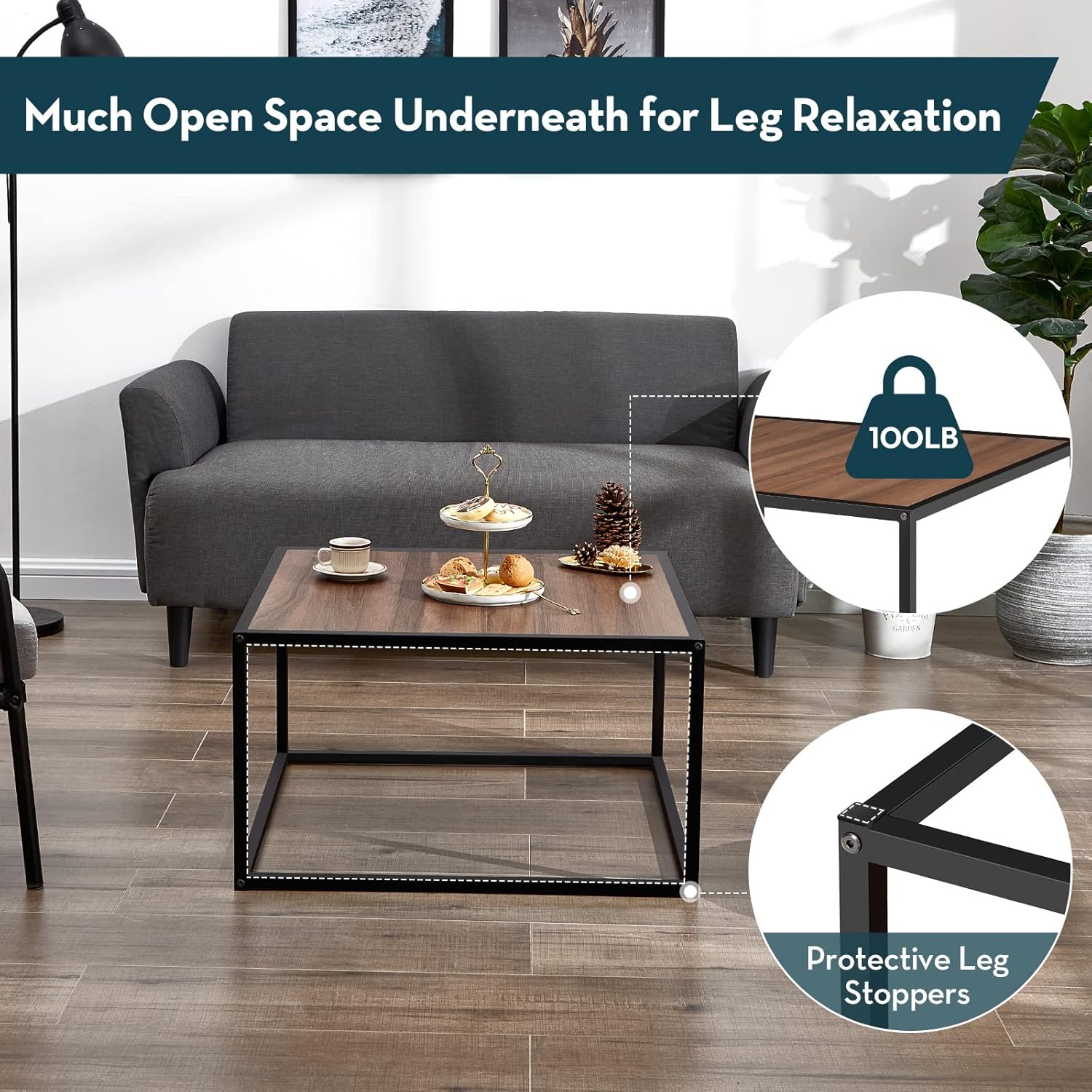 SAYGOER Farmhouse Coffee Table Rustic Wood Coffee Tables Mid Century Modern Coffe Tables for Small Spaces Simple Square Low Center Table for Living Room Home Office Boho Style, Walnut