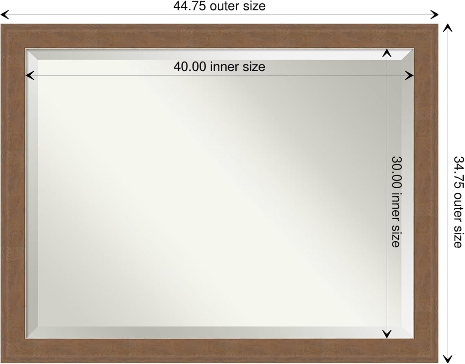 Amanti Art Brown Wall Mirror 35x45 Alta Medium Brown Rectangle Bathroom Mirror for Wall Decor Living Room, X-Large Rustic Farmhouse Frame, Hangs Horizonally and Vertically, Bathroom Decor, Beveled