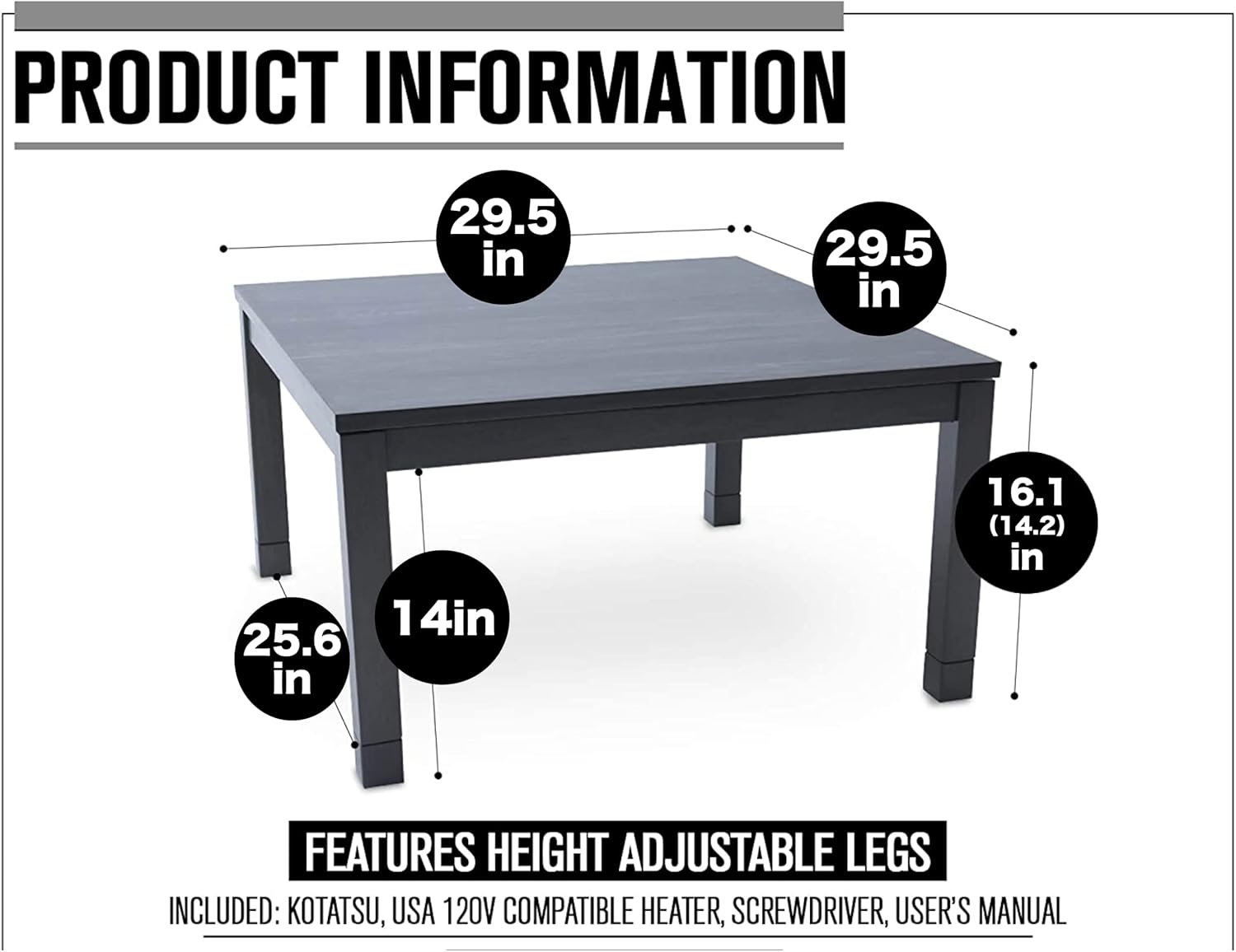 - Easy assembly, reliable design Assembly is easy with bare hands and no tools required. It is also possible to put kotatsu futon or a queen size blanket between the table leg and the table top board. Reliable design that protects the heating element with a power fuse and resin that does not melt, reducing the risk of fire.