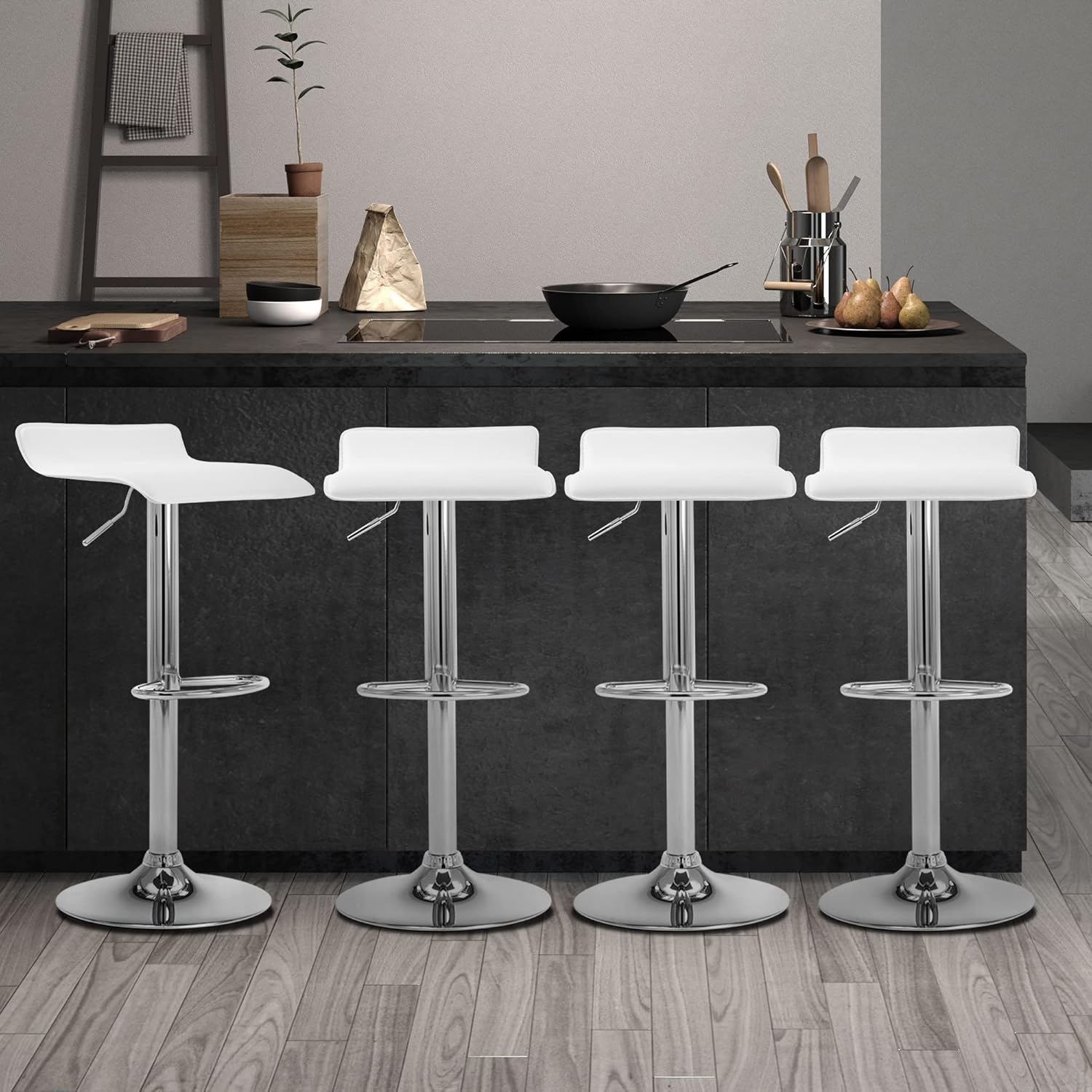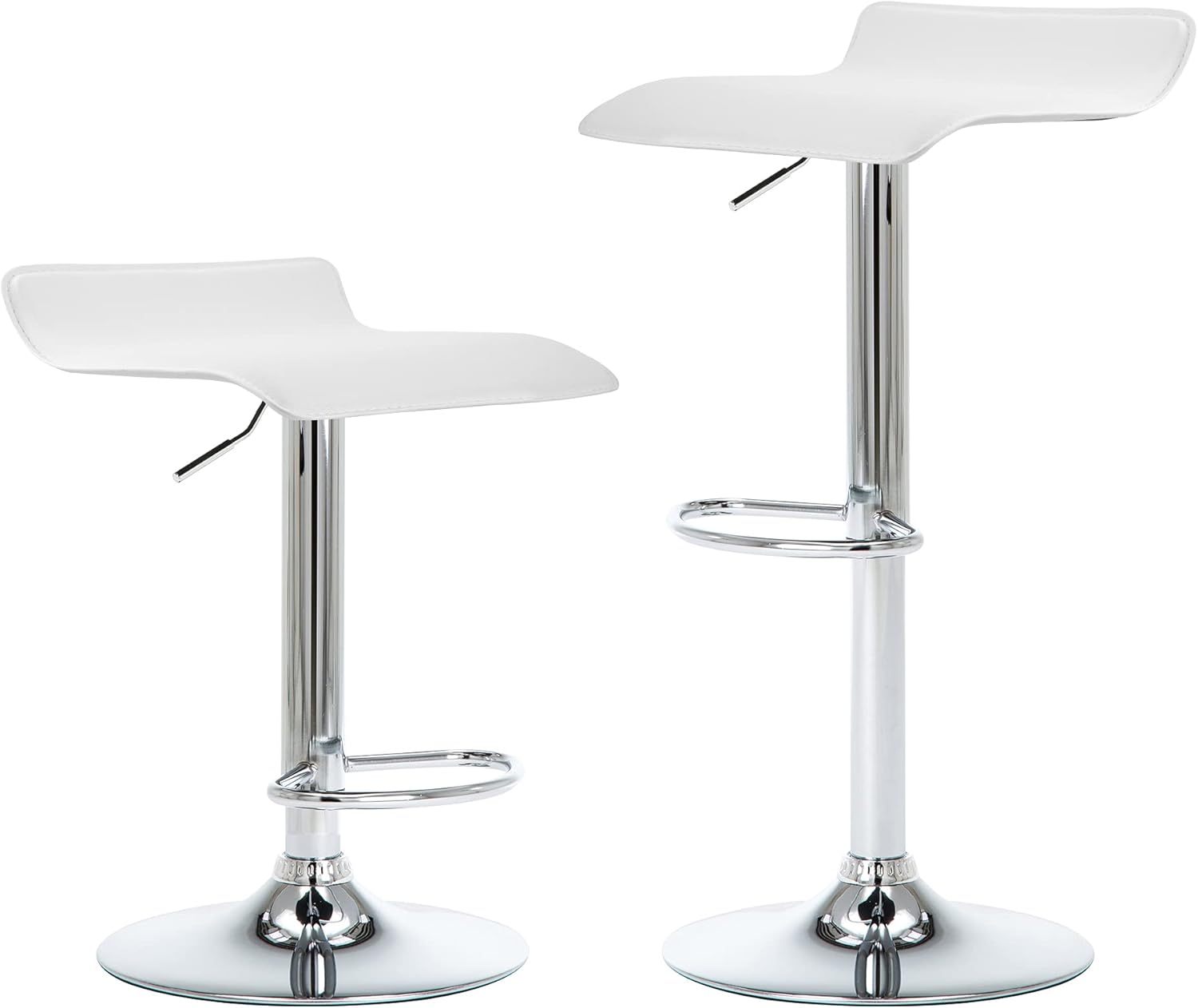 NOBPEINT Contemporary Chrome Air Lift Adjustable Swivel Bar Stool, Set of 2, White