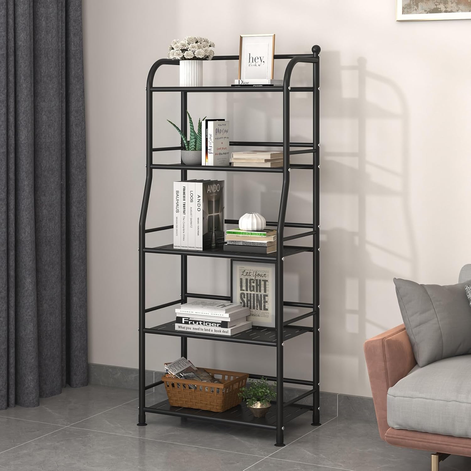 5 Tier Metal Shelf Storage Shelves Living Room Bookshelf Bathroom Corner Storage Rack for Kitchen,Indoor Plant Stand (Matte Black, 5 Tier)