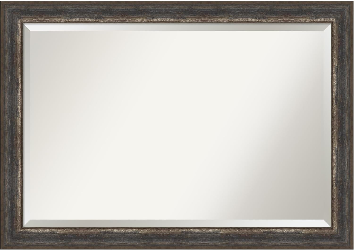 Amanti Art Brown Wall Mirror 29x41 Alta Rustic Char Rectangle Bathroom Mirror for Wall Decor Living Room, Large Rustic Farmhouse Frame, Hangs Horizonally and Vertically, Bathroom Decor, Beveled Edge