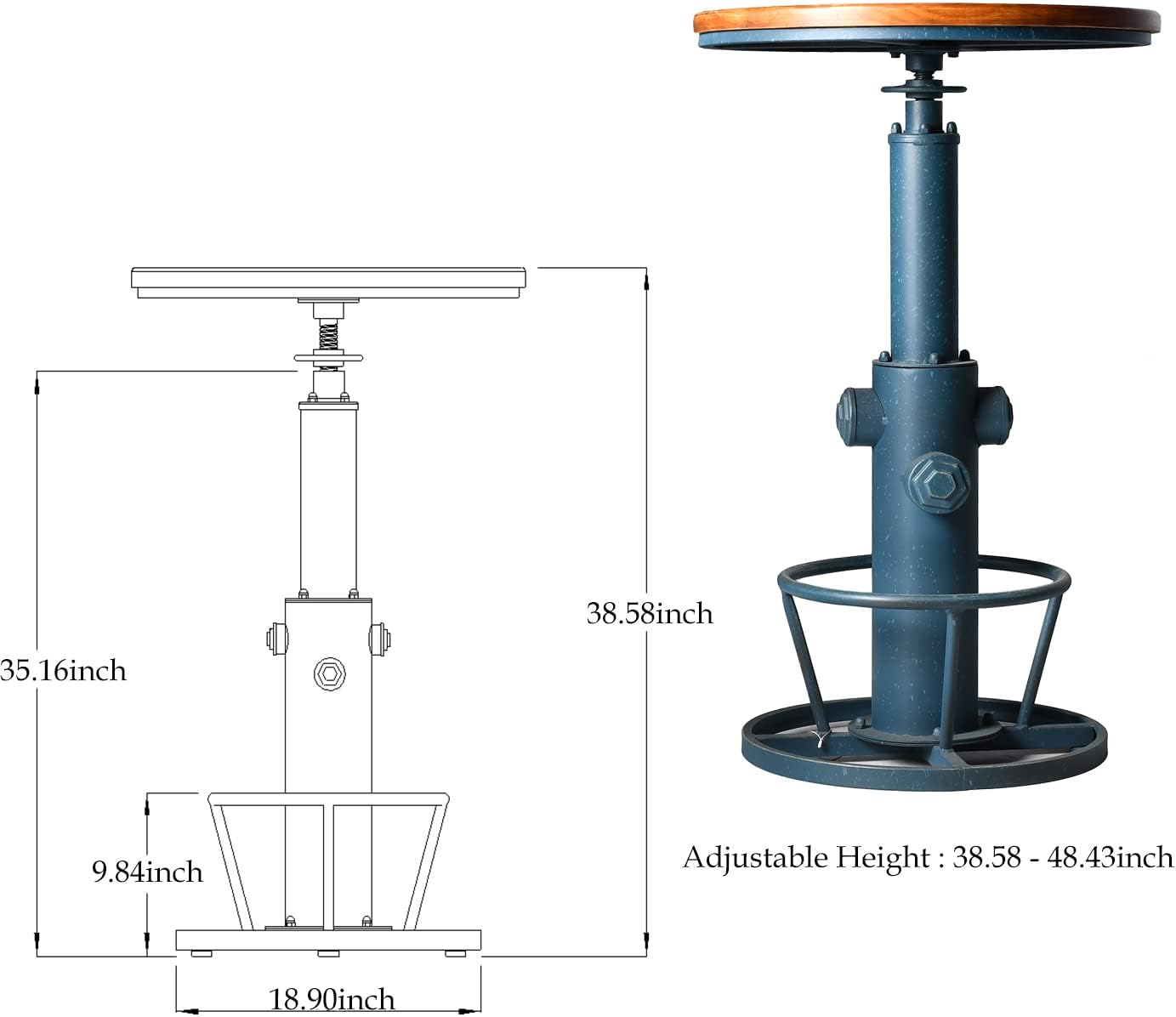 Topower Industrial Bar Table 38.58-48.43" Adjustable Pub Table Kitchen Dining Coffee Bistro Table Antique Blue