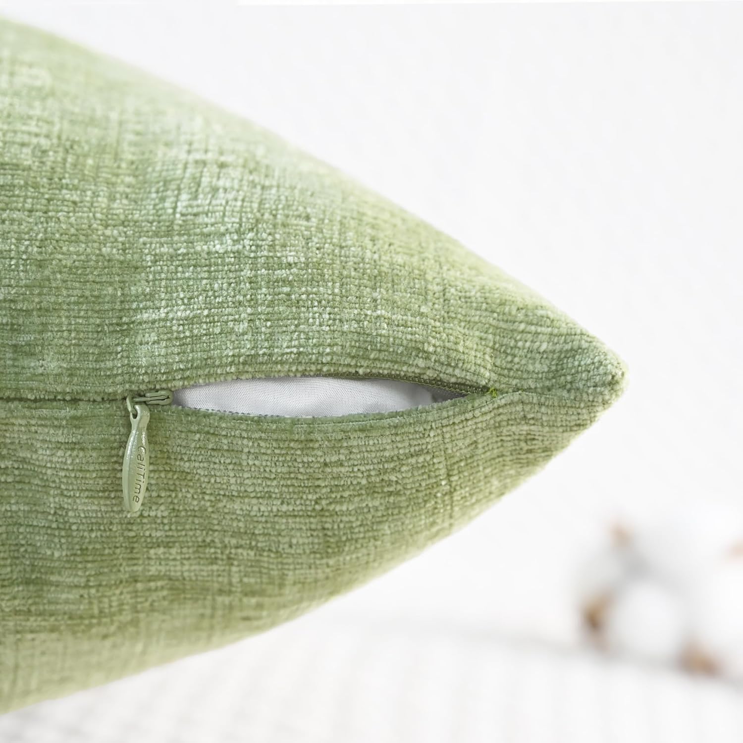 CaliTime Throw Pillow Covers Decorative 26 X 26 Inches Pack of 2 Cozy Chenille Cushion Cases for Couch Sofa Bed Living Room Home Sage Green