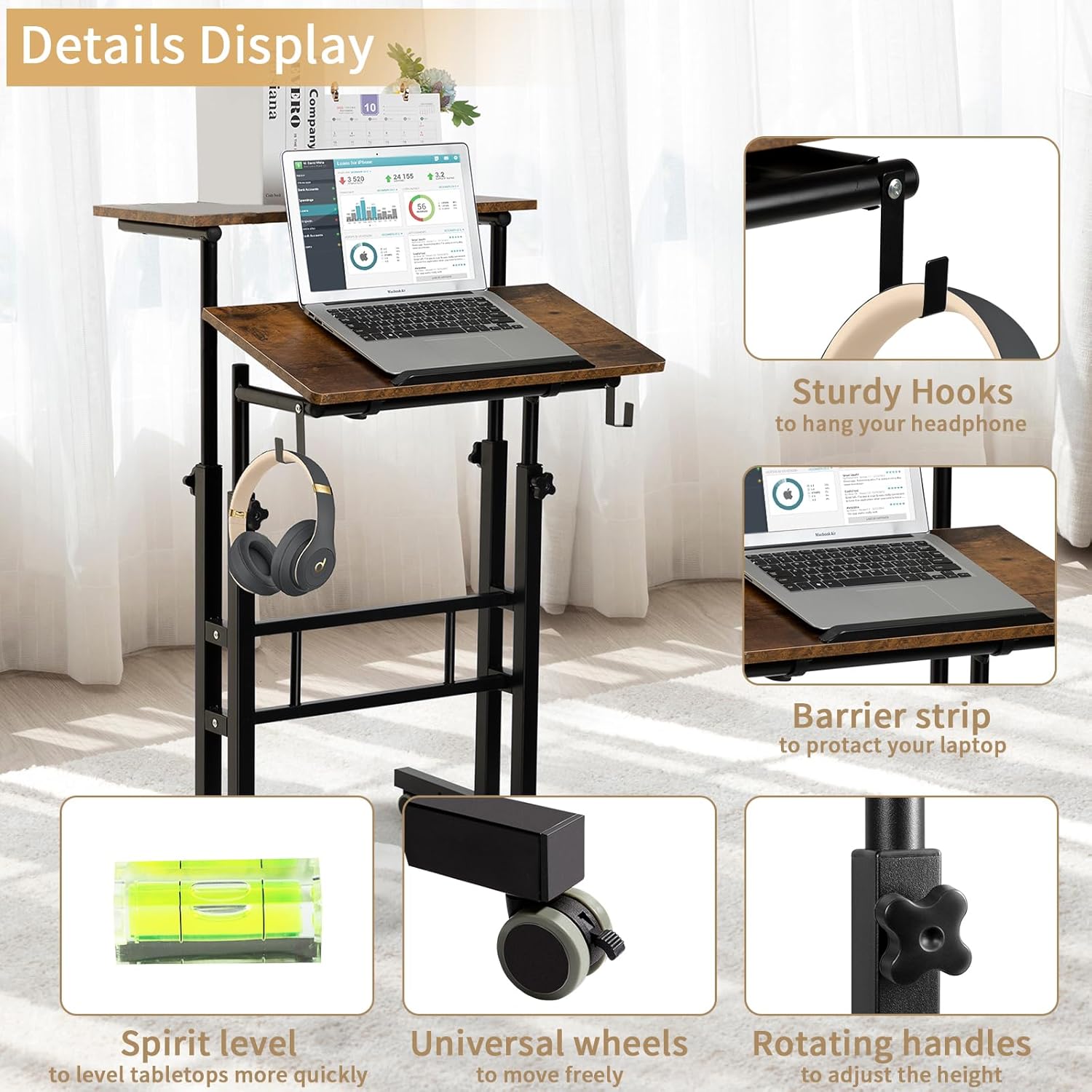 - EASY ASSEMBLY & 24H CUSTOMER SERVICE - The laptop rolling desk contains the detailed instruction and all the needed accessories. A included spirit level can quickly help you to check whether the standing desk is level. If you have any question about the tall desk, please do not hesitate to contact us