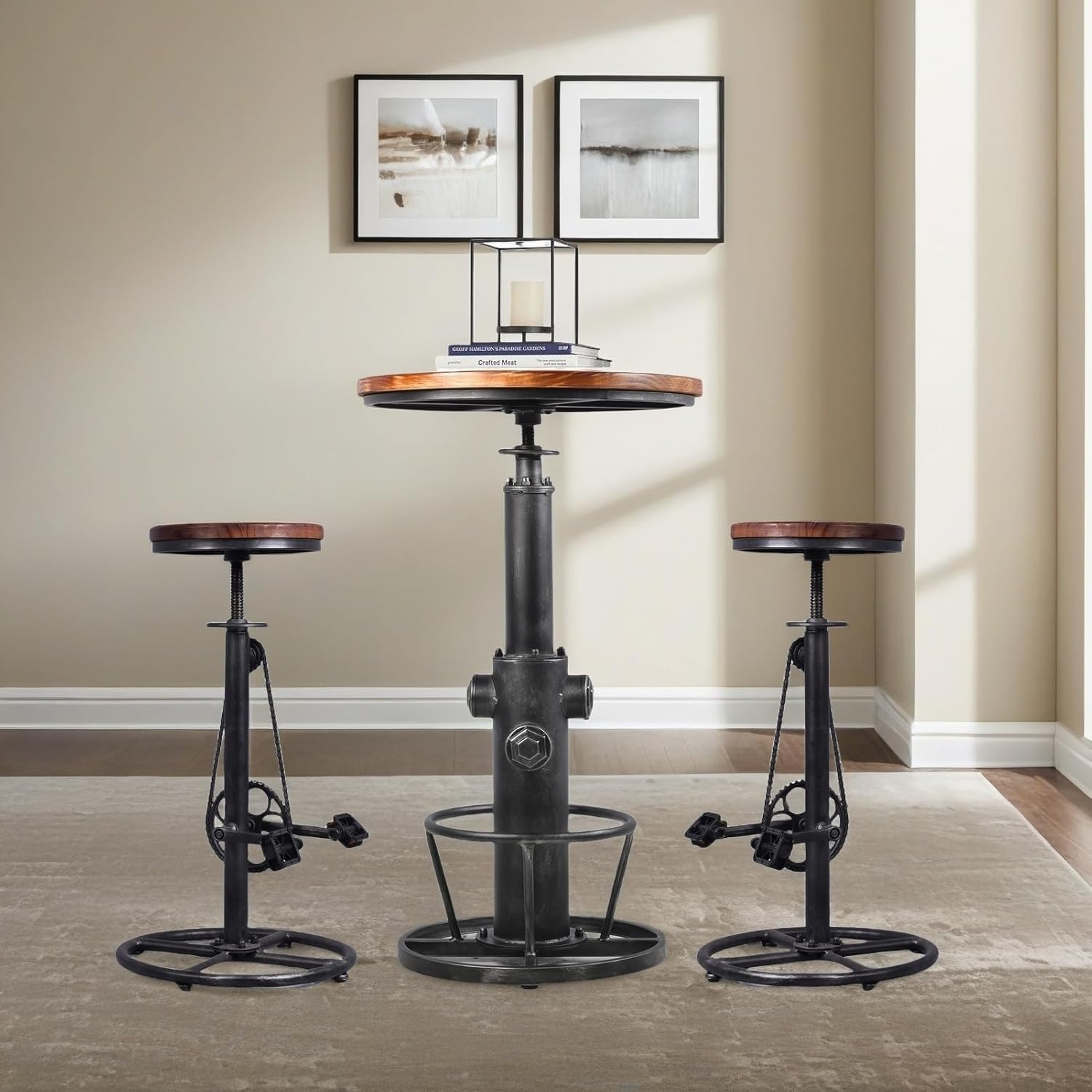 Set of 2 Industrial Bar Stool-Swivel Vintage Coffee Kitchen Dining Island Chair-Bike Pedal Footrest-Extra Tall Pub Height Adjustable 29-37"