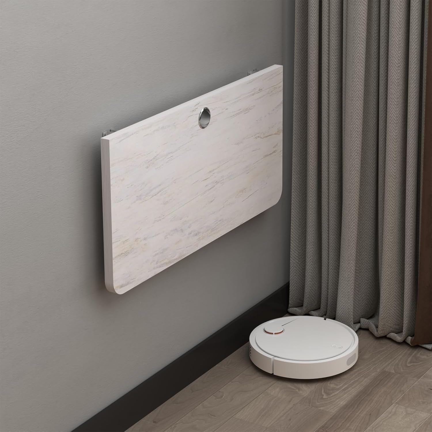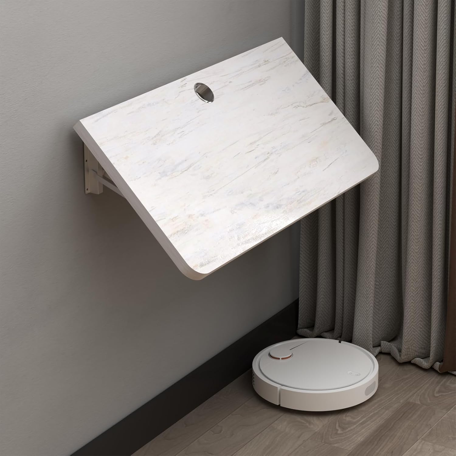 - 【Sturdy & Foldable Design】: The triangle structure of the quality brackets on this wall mounted folding table increases structural stability, providing you with a firm and solid surface. The bracket lever underneath features a single finger click, making it incredibly easy to fold this drop down wall table back down.