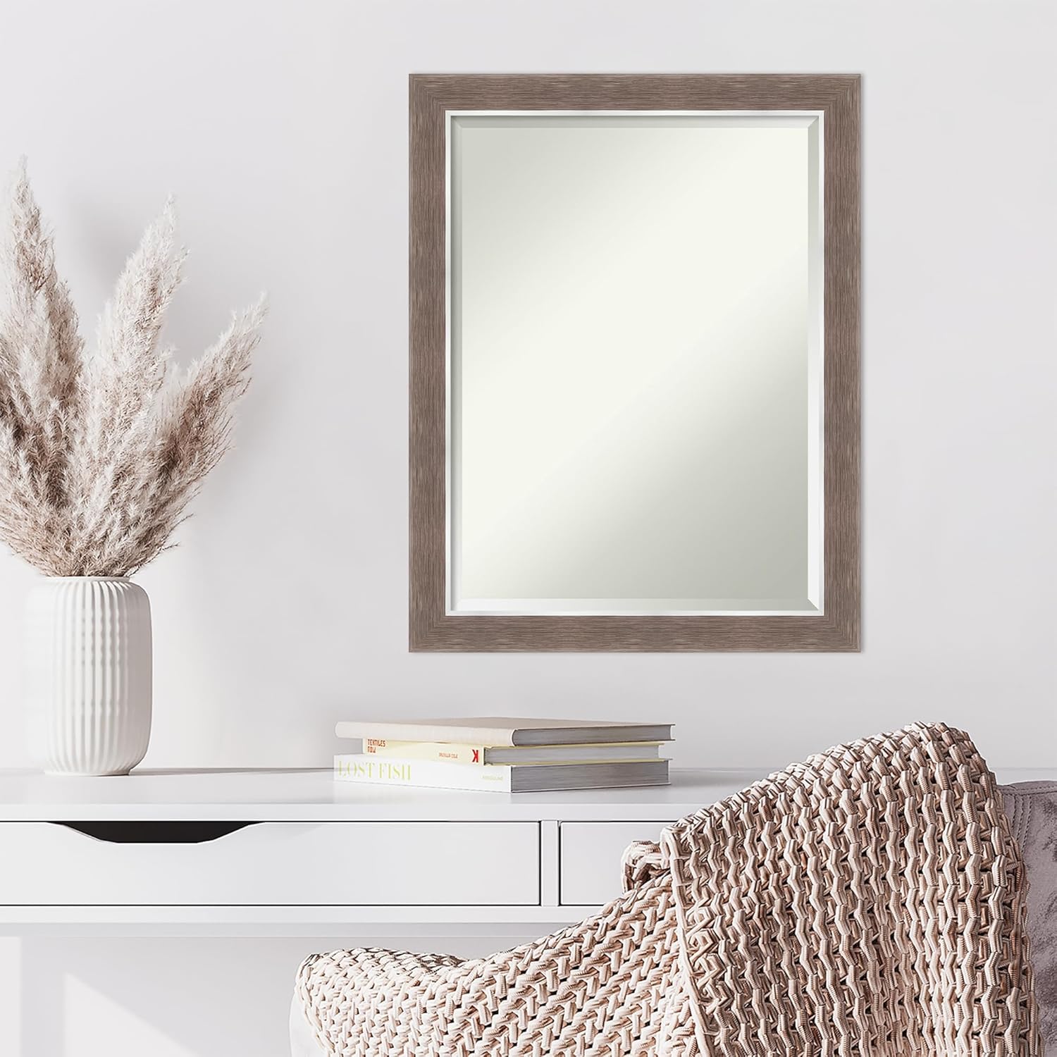 Amanti Art Brown Wall Mirror 28x22 Noble Mocha Rectangle Bathroom Mirror for Wall Decor Living Room, Medium Casual Frame, Hangs Horizonally and Vertically, Bathroom Decor, Beveled Edge from WI, USA