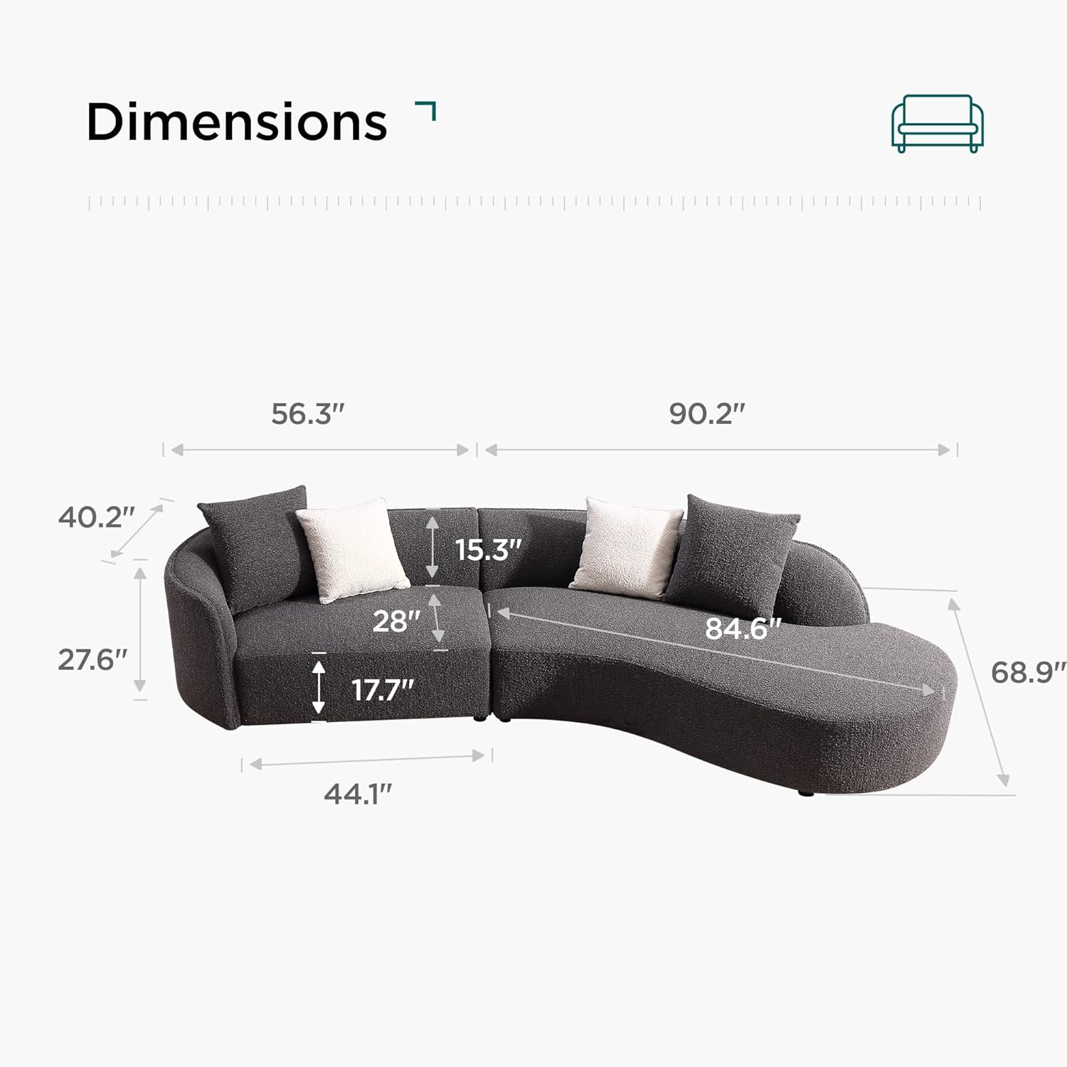 - Seat Depth : 56.3 inches