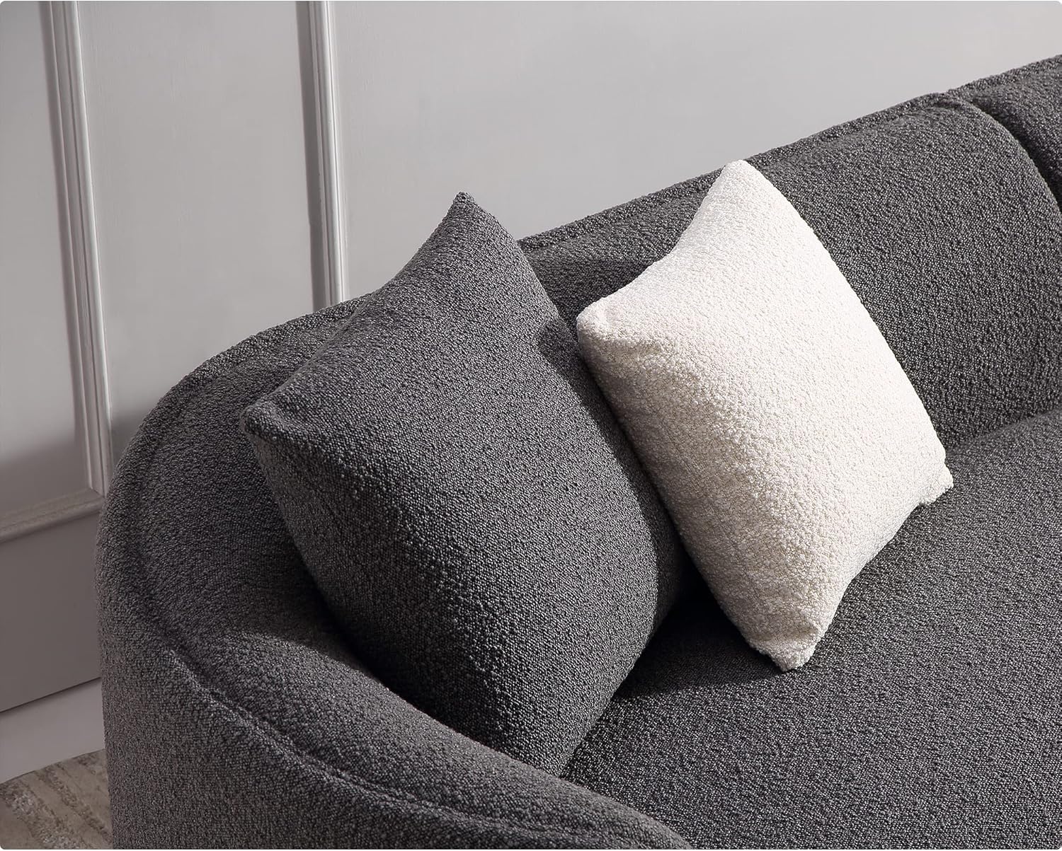 Acanva Luxury Modern Style Living Room Upholstery Curved Sofa with Chaise 2-Piece Set, Right Hand Facing Sectional, Pearl Boucle Couch, Dark Grey