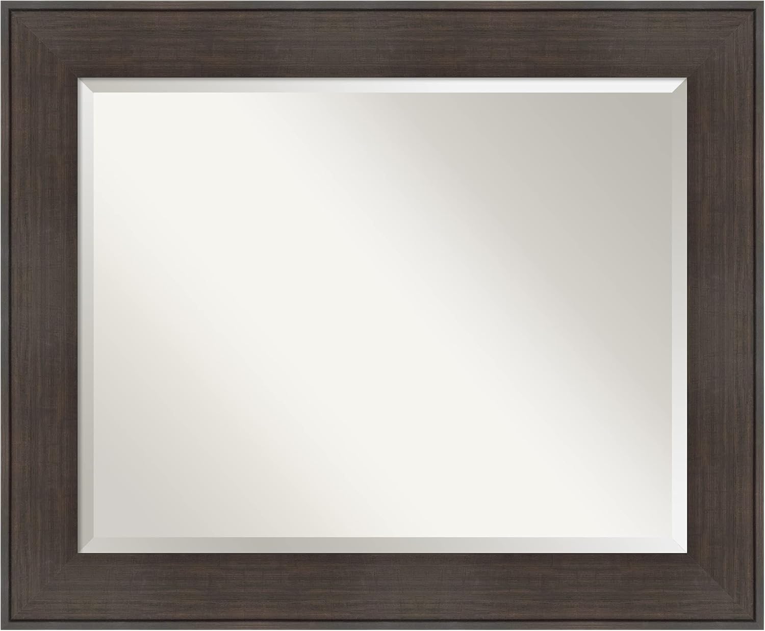 Amanti Art Brown Wall Mirror 28x34 William Rustic Woodgrain Rectangle Bathroom Mirror for Wall Decor Living Room, Large Classic Frame, Hangs Horizonally and Vertically, Bathroom Decor, Beveled Edge