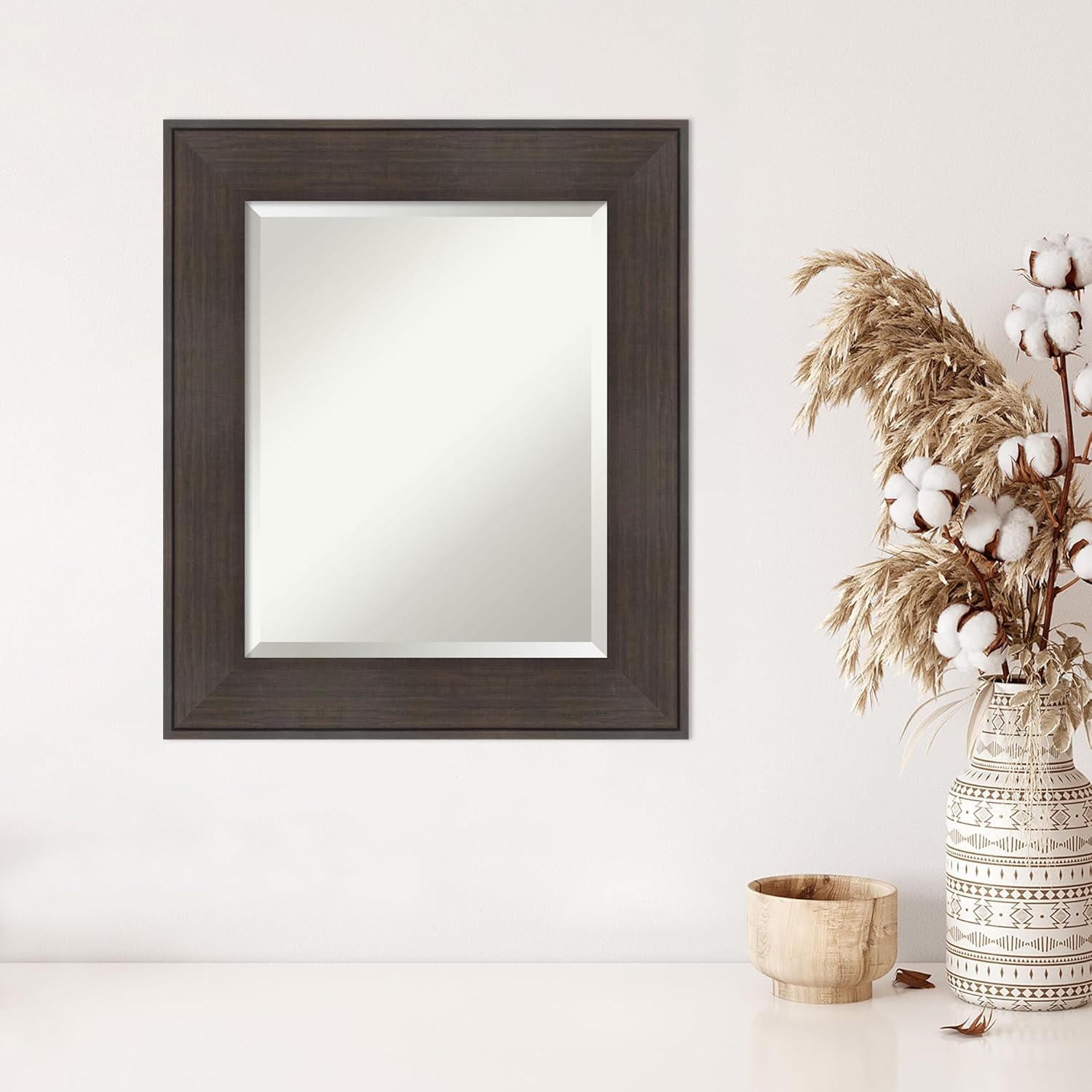 Amanti Art Brown Wall Mirror 26x22 William Rustic Woodgrain Rectangle Bathroom Mirror for Wall Decor Living Room, Small Classic Frame, Hangs Horizonally and Vertically, Bathroom Decor, Beveled Edge