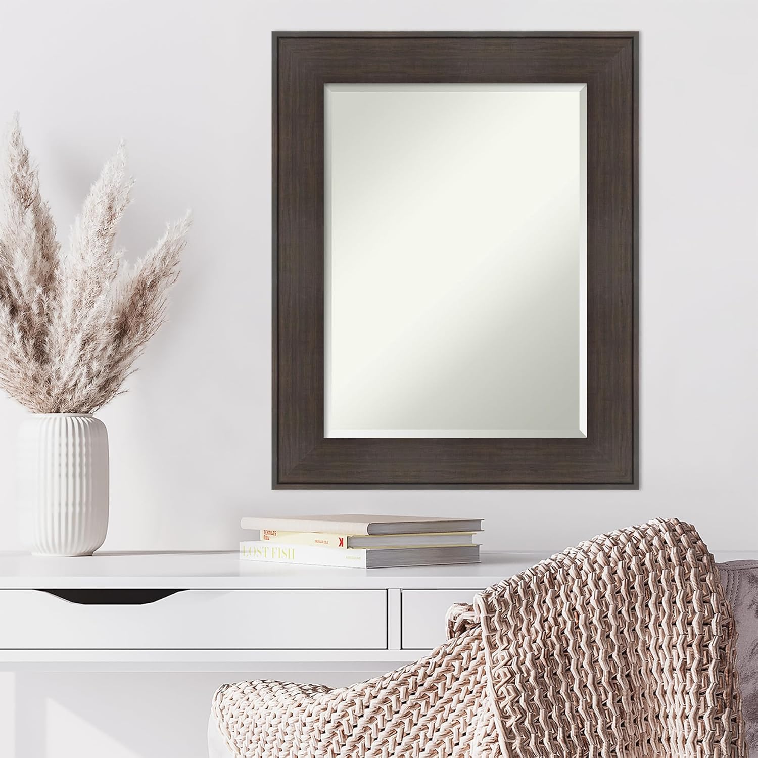Amanti Art Brown Wall Mirror 30x24 William Rustic Woodgrain Rectangle Bathroom Mirror for Wall Decor Living Room, Medium Classic Frame, Hangs Horizonally and Vertically, Bathroom Decor, Beveled Edge