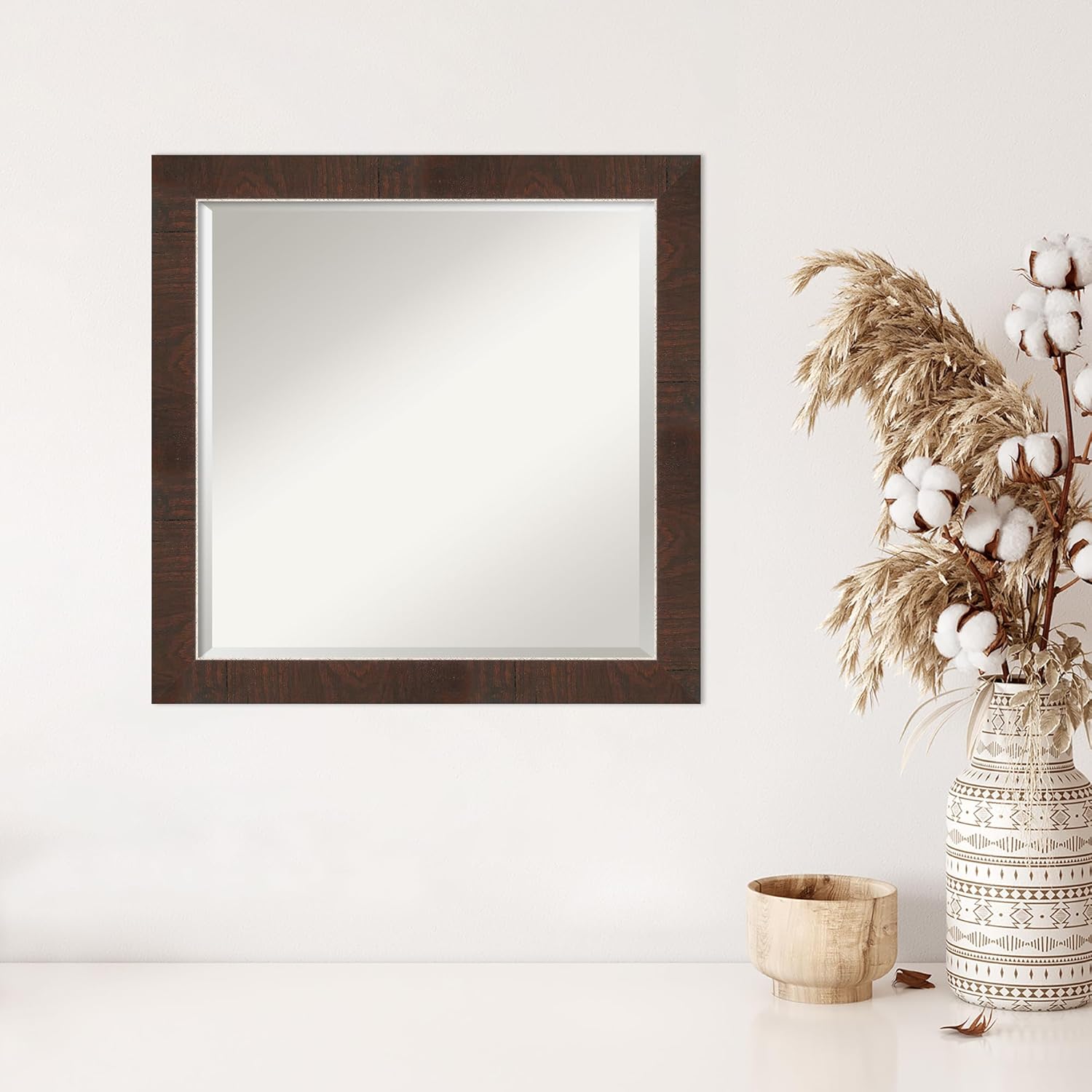 Amanti Art Brown Wall Mirror 23x23 Wildwood Brown Narrow Square Bathroom Mirror for Wall Decor Living Room, Medium Rustic Farmhouse Frame, Hangs Horizonally and Vertically, Bathroom Decor, Beveled