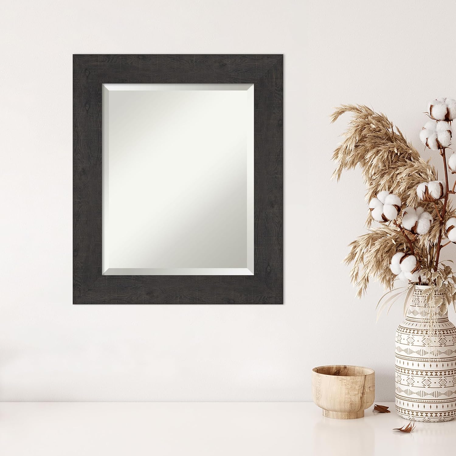 Amanti Art Brown Wall Mirror 26x22 Rustic Plank Espresso Rectangle Bathroom Mirror for Wall Decor Living Room, Small Rustic Farmhouse Frame, Hangs Horizonally and Vertically, Bathroom Decor, Beveled