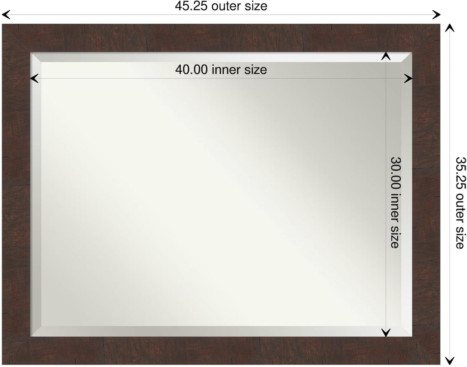Amanti Art Brown Wall Mirror 35x45 Wildwood Brown Rectangle Bathroom Mirror for Wall Decor Living Room, X-Large Rustic Farmhouse Frame, Hangs Horizonally and Vertically, Bathroom Decor, Beveled Edge