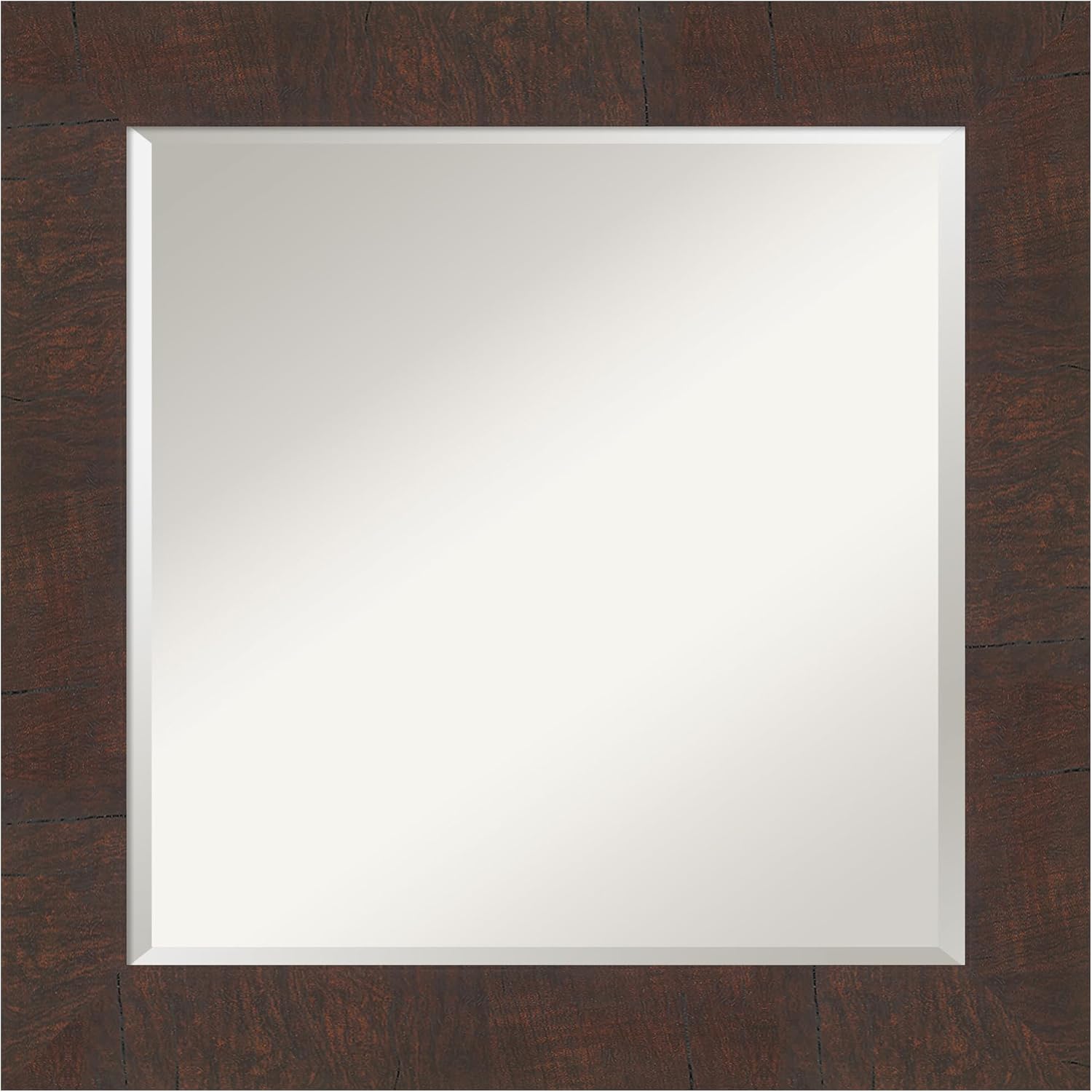 Amanti Art Brown Wall Mirror 25x25 Wildwood Brown Square Bathroom Mirror for Wall Decor Living Room, Medium Rustic Farmhouse Frame, Hangs Horizonally and Vertically, Bathroom Decor, Beveled Edge