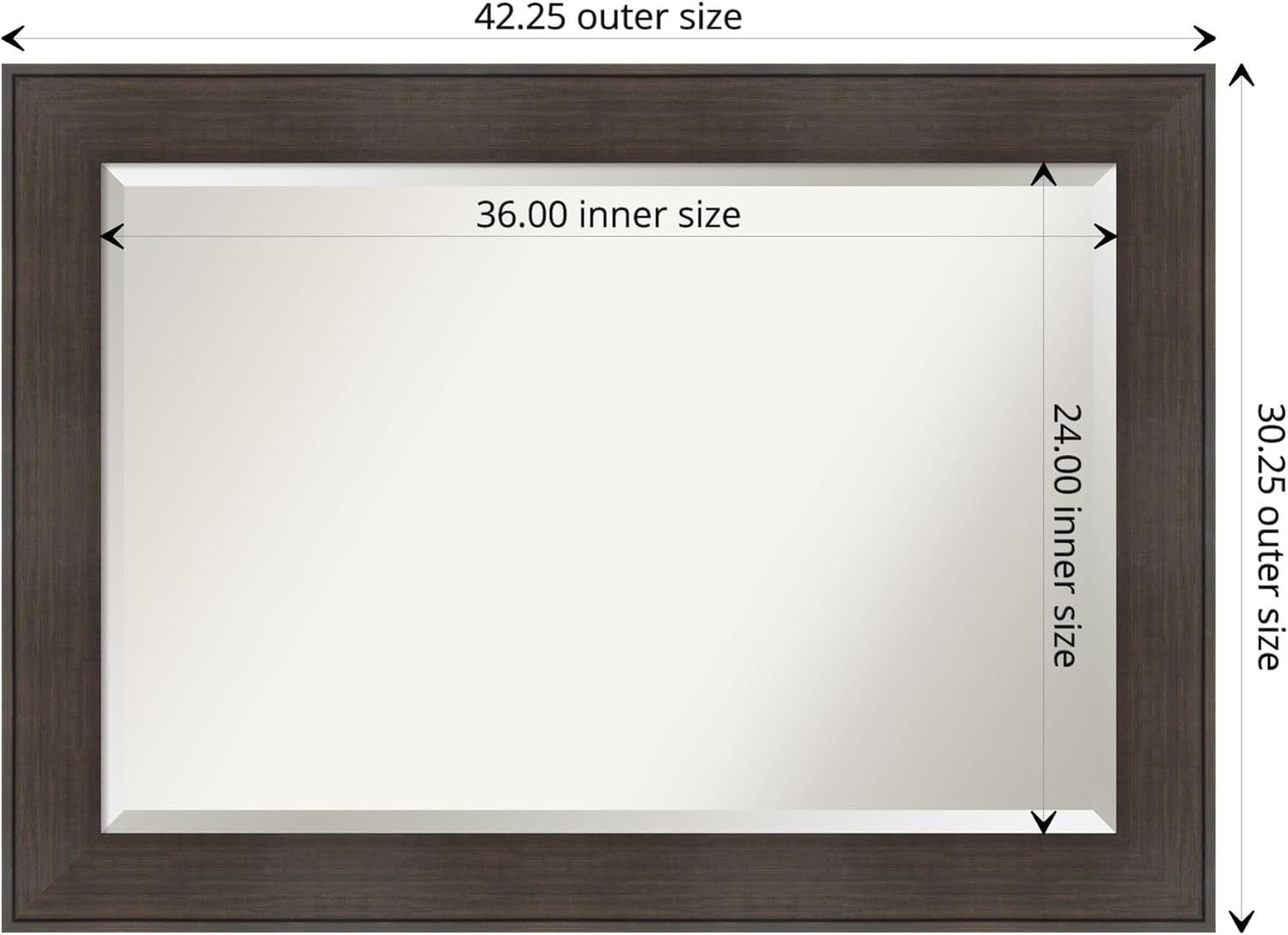 Amanti Art Brown Wall Mirror 30x42 William Rustic Woodgrain Rectangle Bathroom Mirror for Wall Decor Living Room, Large Classic Frame, Hangs Horizonally and Vertically, Bathroom Decor, Beveled Edge