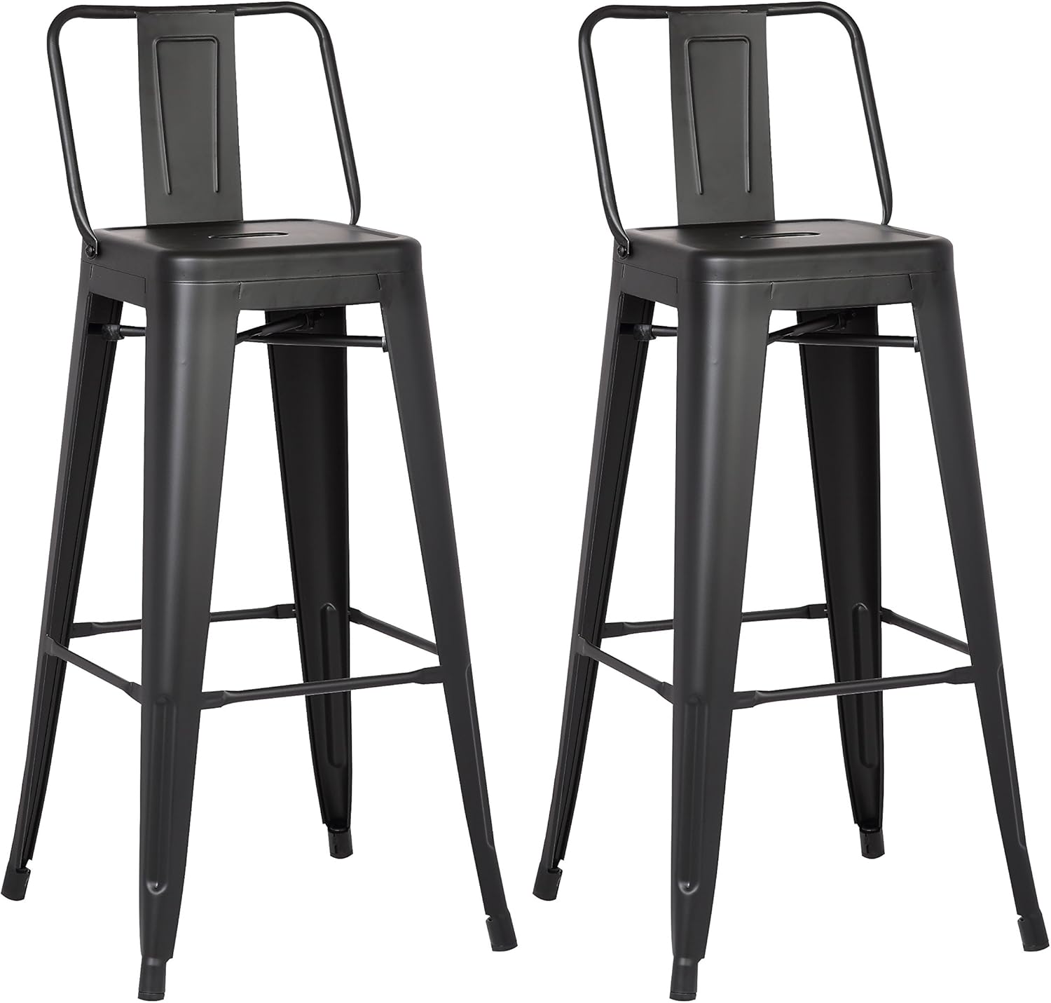 AC Pacific 30” Metal Barstool Set of 2 – Country Rustic Style with Low Back, Lightweight & Sturdy Build, Easy Assembly – Midnight Matte Finish