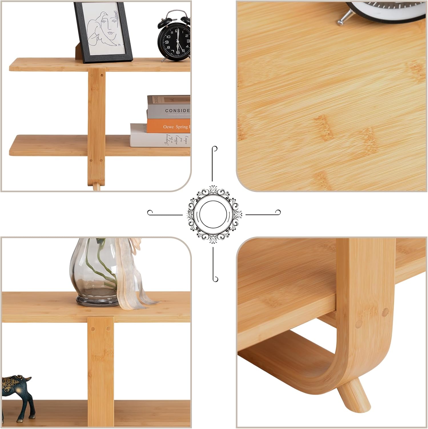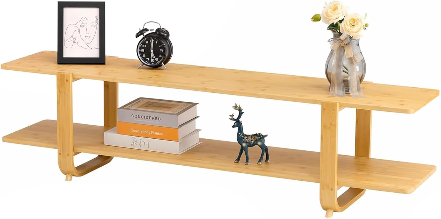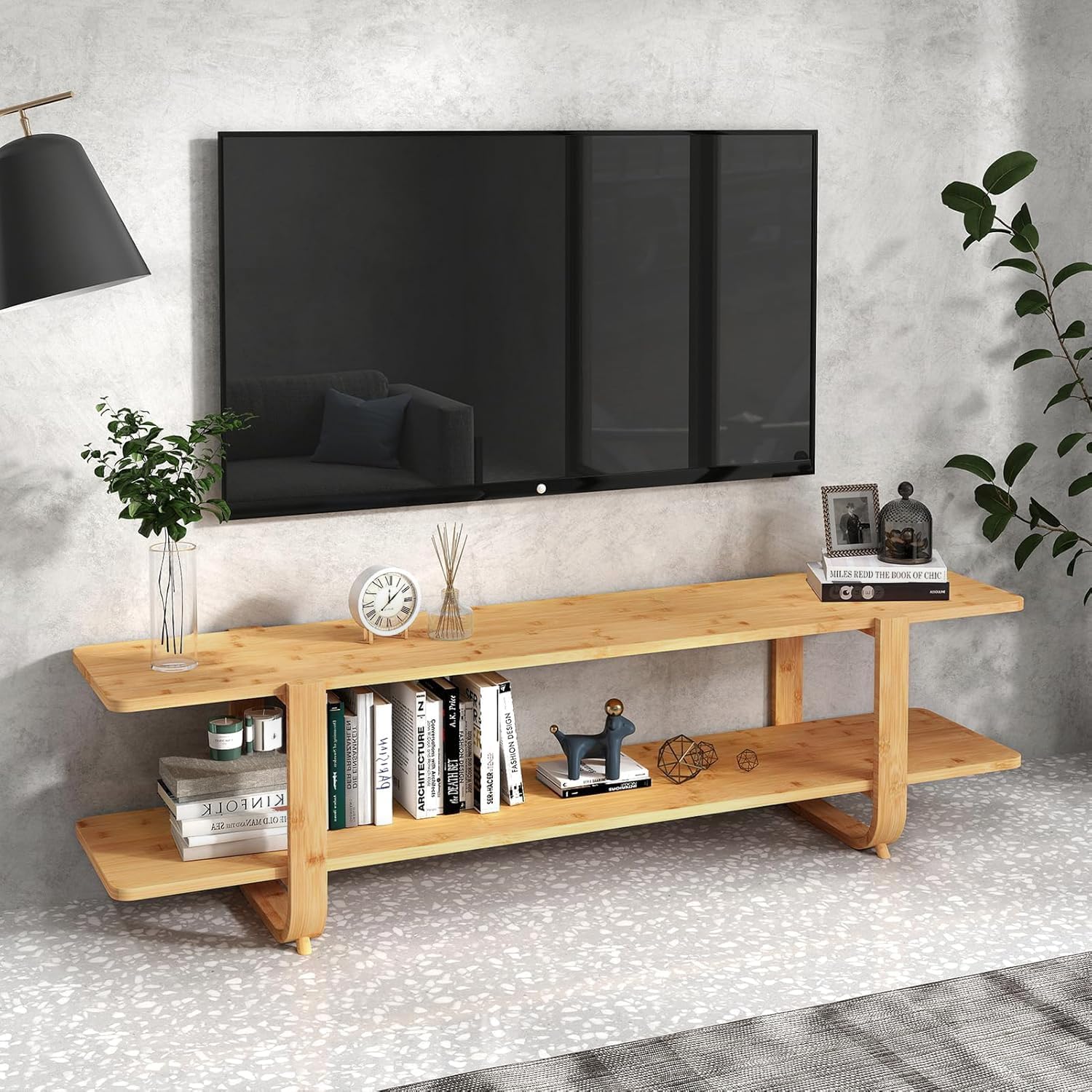 HollyHOME Bamboo TV Stand with Storage for TVs up to 65'', Modern Entertainment Center with 2 Open Shelf, Accent TV Media Console Table for Living Room, Bedroom, 55"(L), Burlywood
