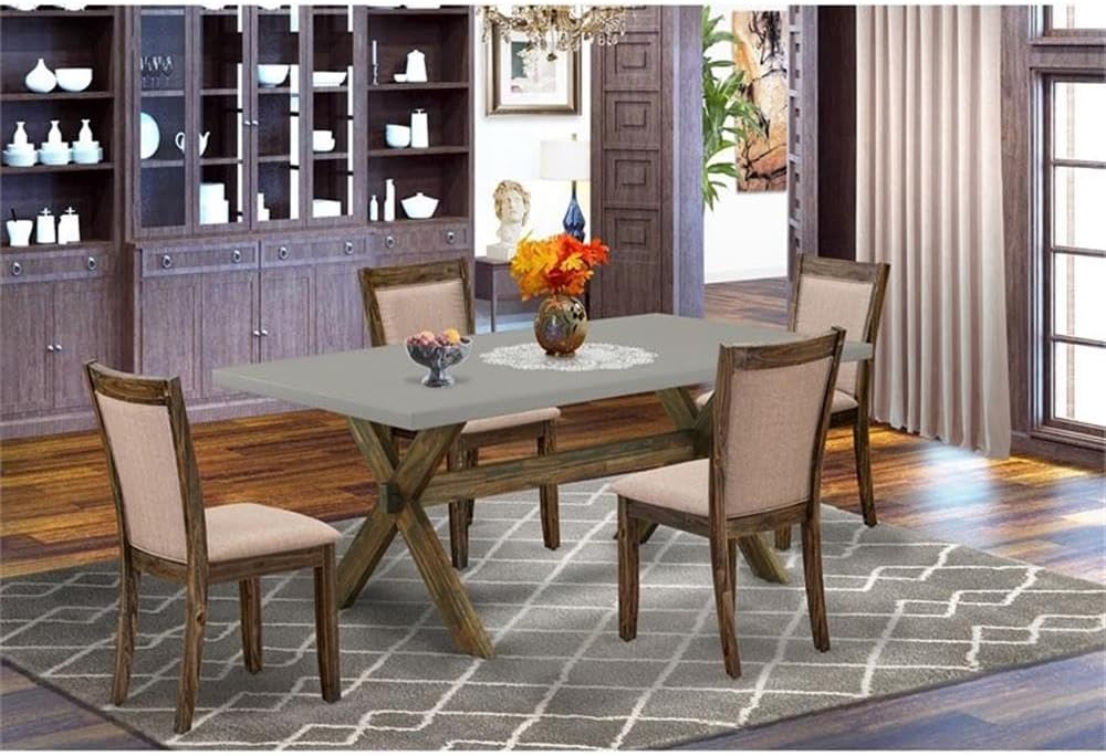 East West Furniture X797MZ716-5 5 Piece Kitchen Table Set for 4 Includes a Rectangle Dining Room Table with X-Legs and 4 Dark Khaki Linen Fabric Upholstered Chairs, 40x72 Inch, Multi-Color