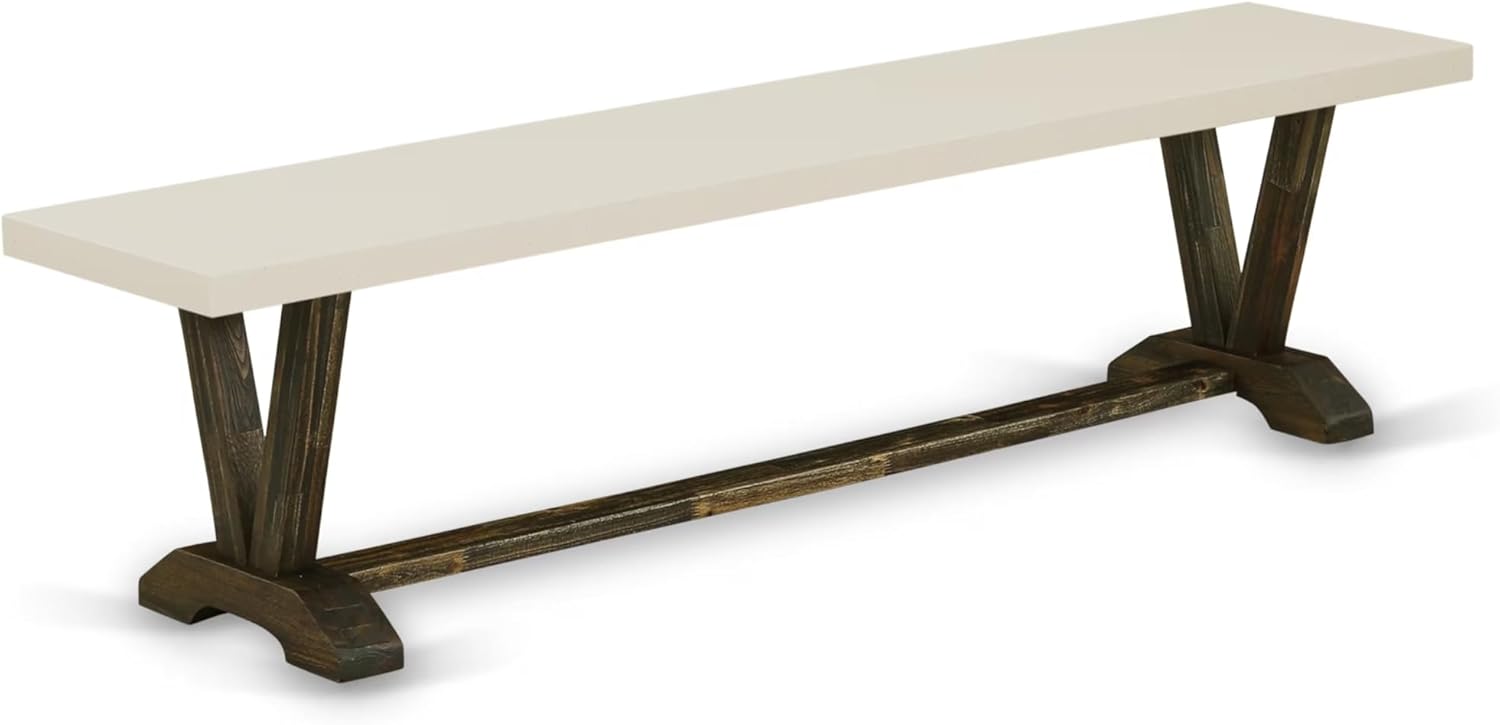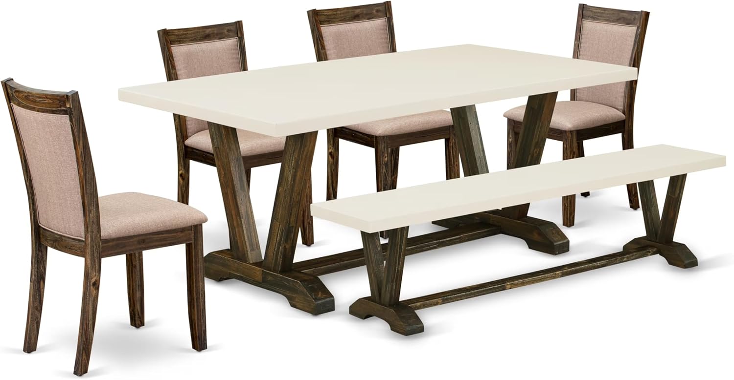 East West Furniture V727MZ716-6 6 Piece Dining Set Contains a Rectangle Dining Room Table with V-Legs and 4 Dark Khaki Linen Fabric Upholstered Chairs with a Bench, 40x72 Inch, Multi-Color