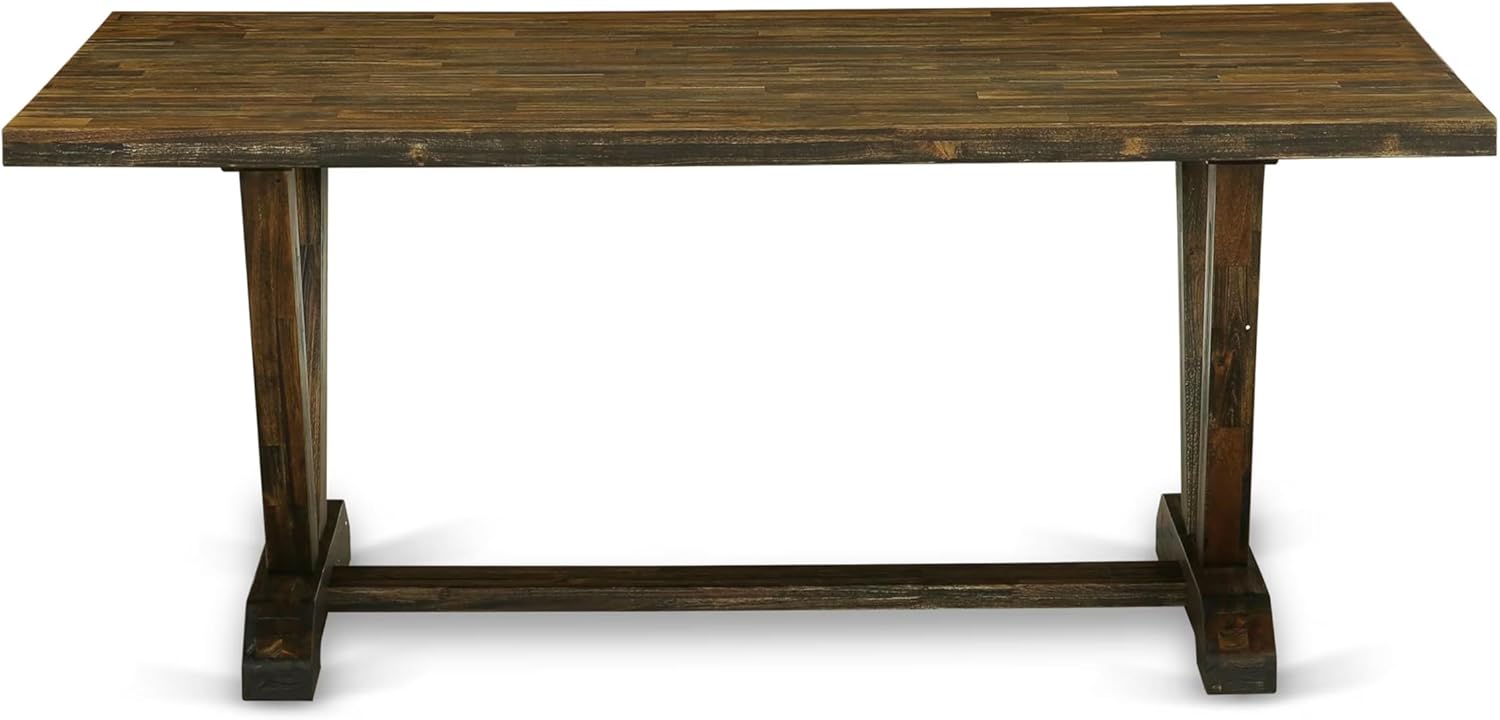 - KITCHEN TABLE SET FINISH: Within our selection, the dining table and contemporary bench exhibit a Distressed Jacobean top matched with a Distressed Jacobean finished base. These wood chairs are meticulously finished in Distressed Jacobean with Dark Khaki fabric upholstery. The impeccably crafted wooden frames radiate modern sophistication, establishing this dining table set as a focal point of elegance within any home decor arrangement.