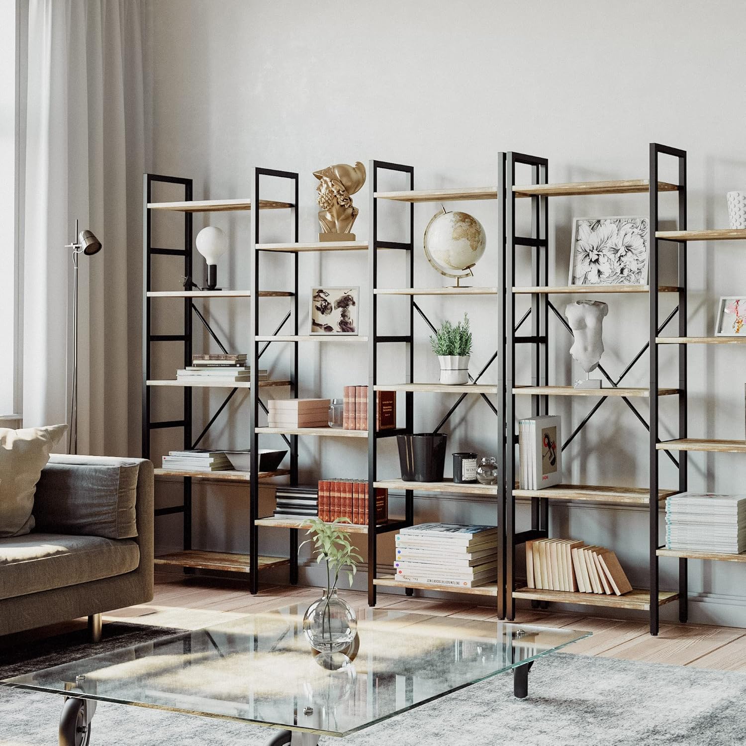 IRONCK Bookcases and Bookshelves Triple Wide 5 Tiers Industrial Bookshelf, Large Etagere Bookshelf Open Display Shelves with Metal Frame for Living Room Bedroom Home Office