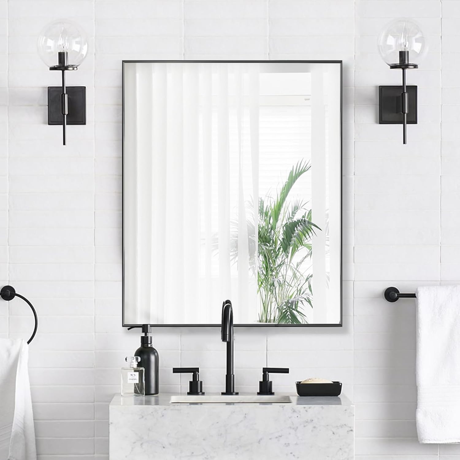 24x30 Inch Black Bathroom Mirror for Wall, Aluminum Frame Rectangle Rectangular Vanity Mirror, Modern Large for Bedroom, Living Room, Horizontal or Vertical