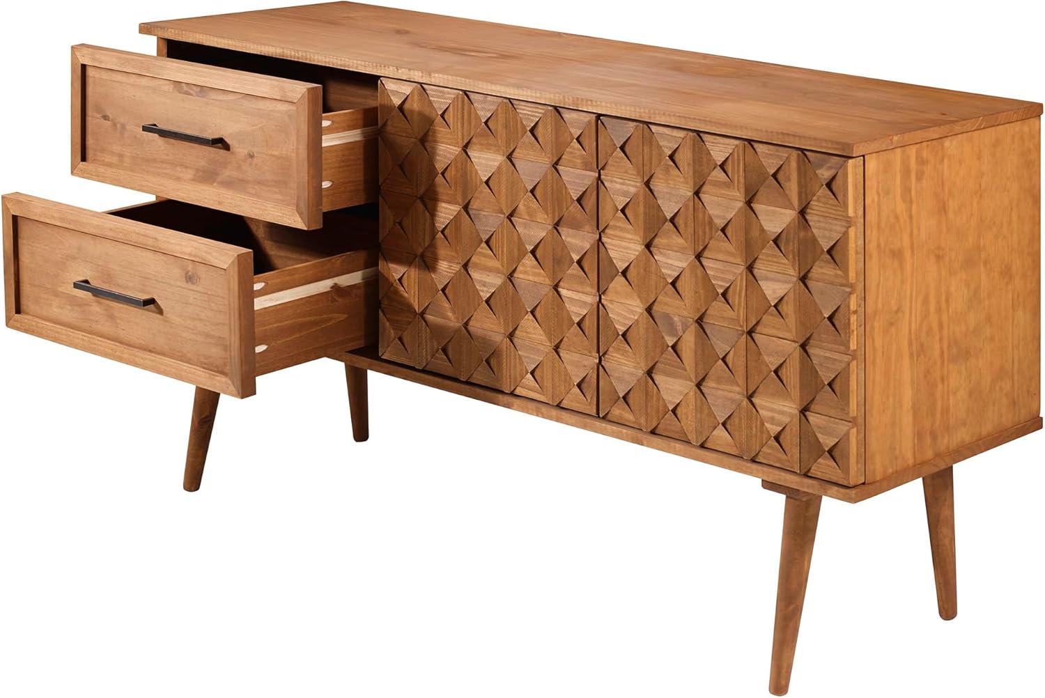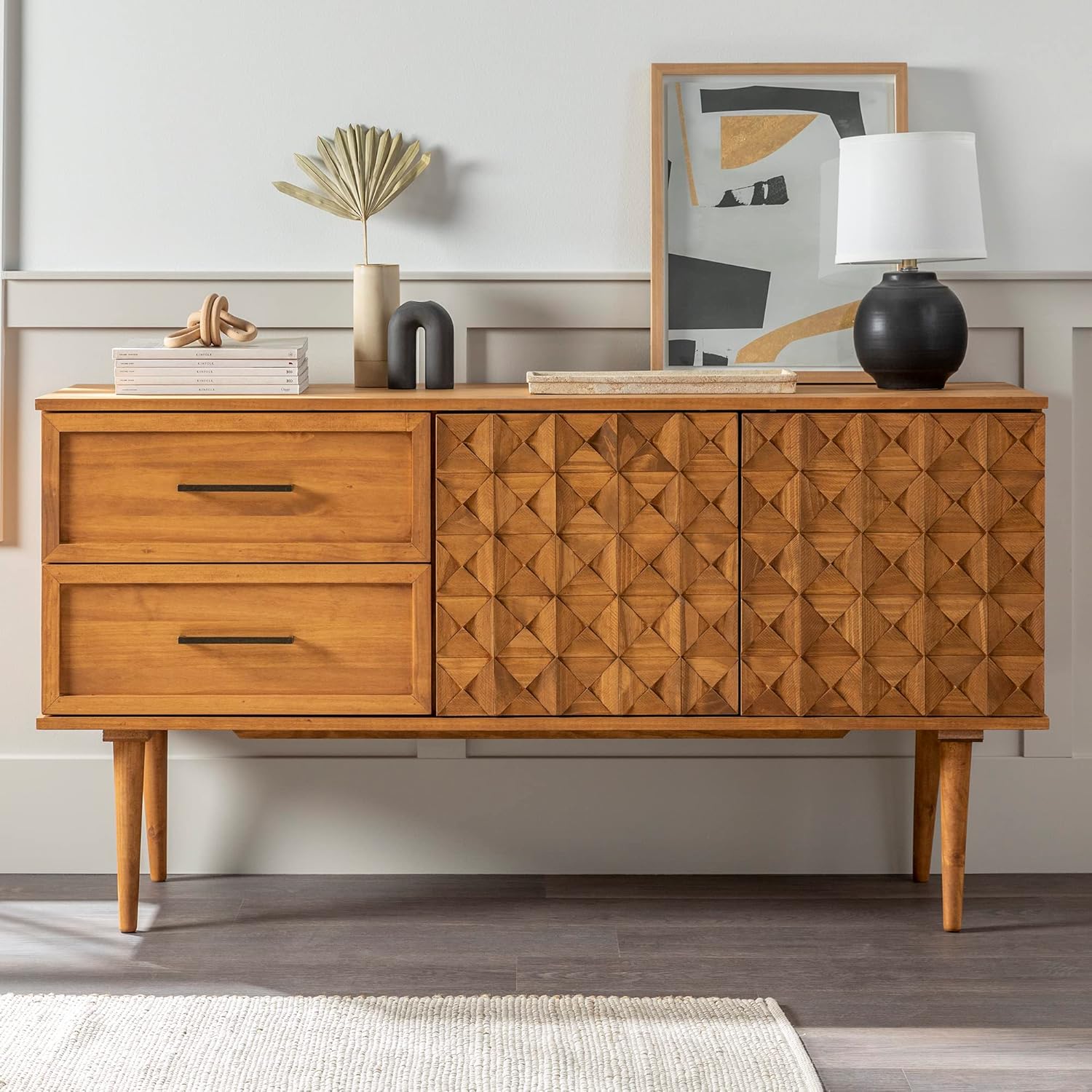 Walker Edison Deluca Boho Solid Wood 2 Door Sideboard with Prism Detail, 58 Inch, Caramel