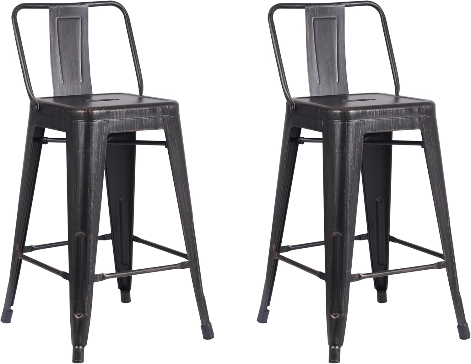 AC Pacific 24” Metal Barstool Set of 2 – Country Rustic Style with Low Back, Lightweight & Sturdy Build, Easy Assembly – Sanded Matte Midnight/Brushed Rusty Gold