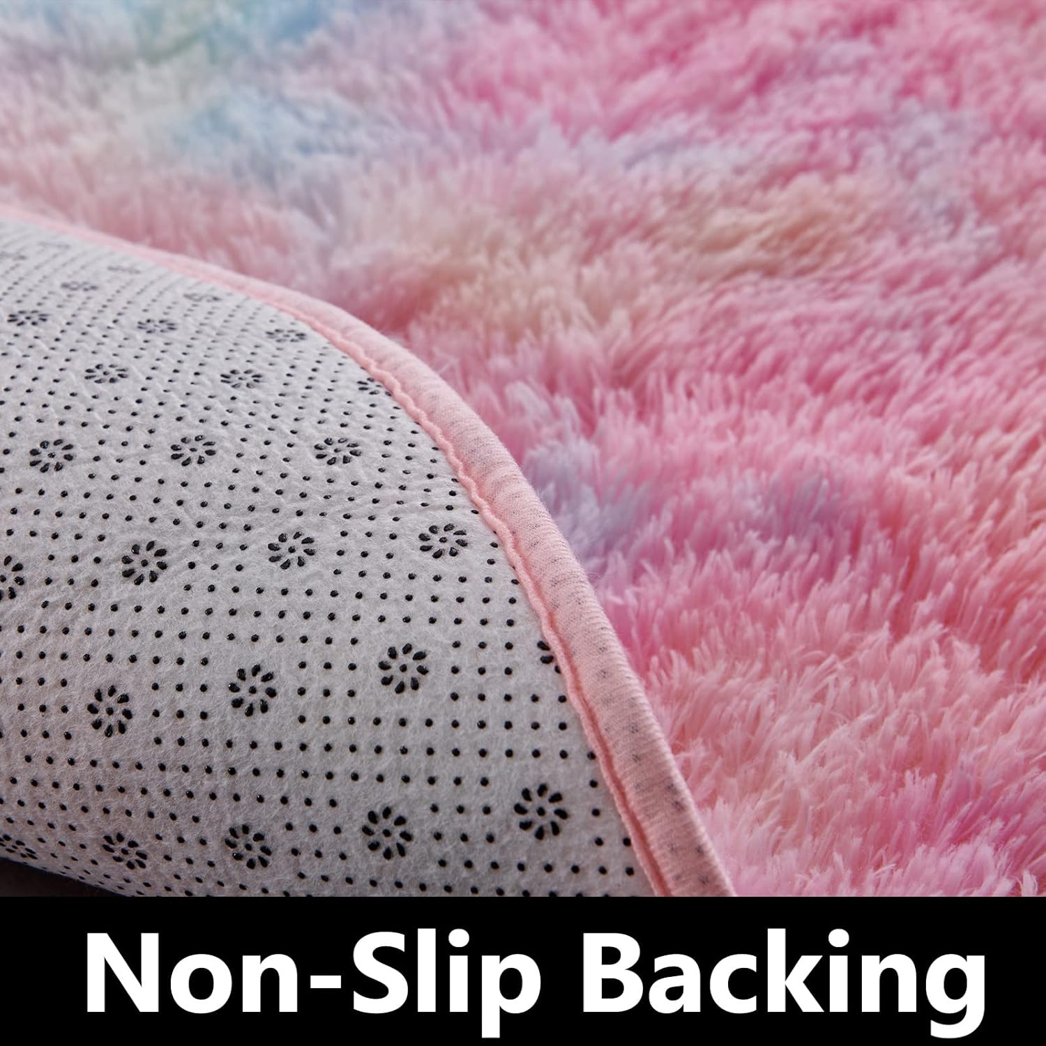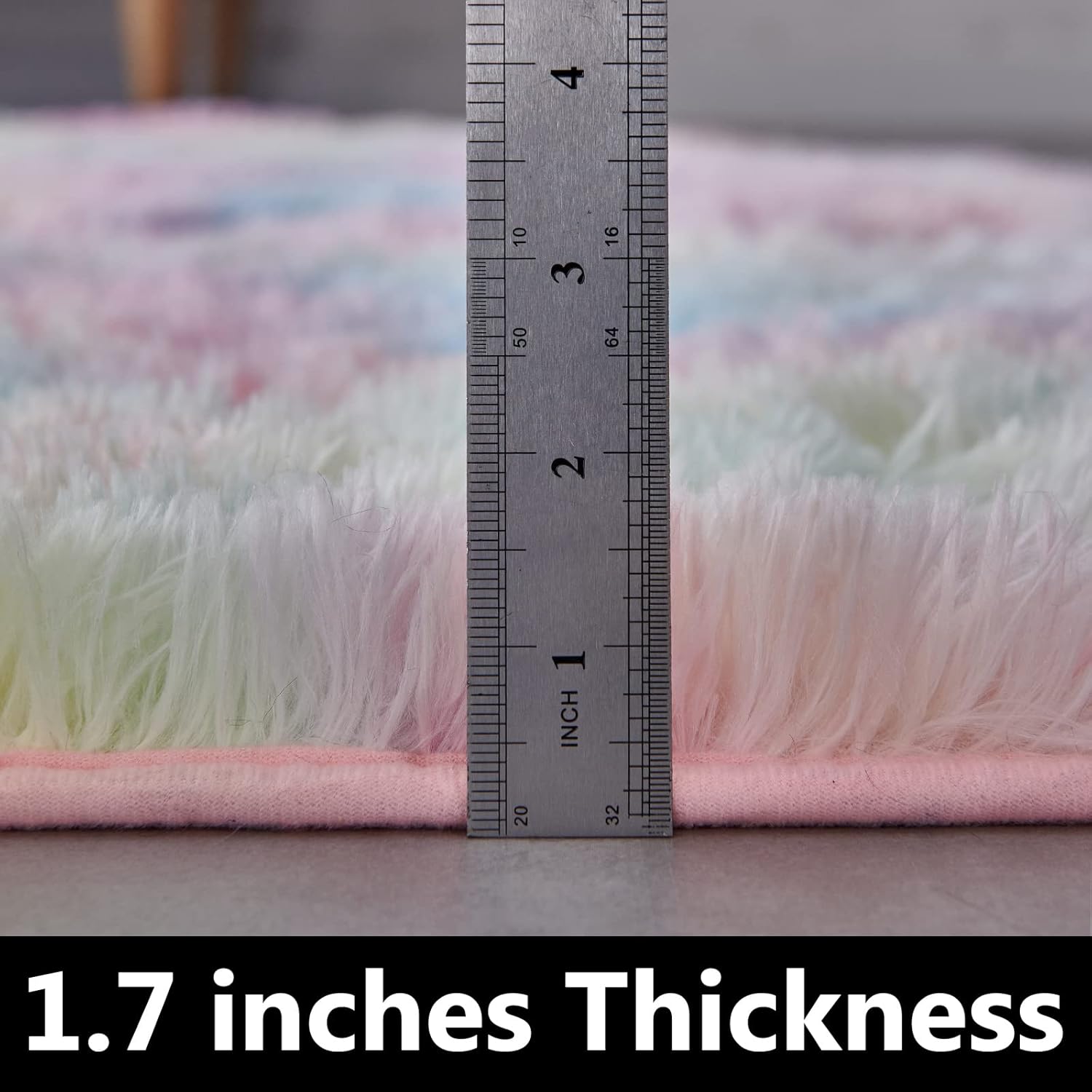 FJZFING Rainbow Round Rug Ultra-Soft Plush Modern 4x4 Circle Area Rug for Kid's Bedroom, Fluffy Shag Circular Rug for Nursery Room, Non-Slip Home Decor Colorful Carpet for Teen's Room