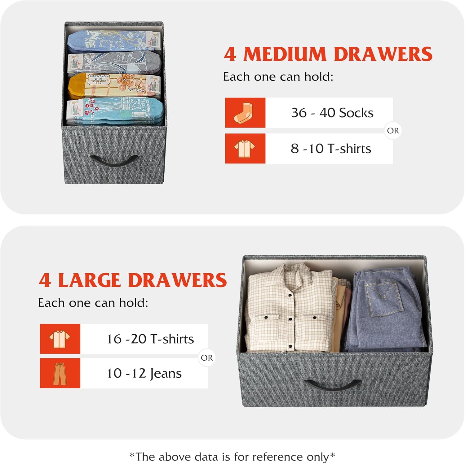 - Roomy Storage Space: The 8 foldable deep drawers are spacious and provide endless organizational possibilities. Wooden top can place things you want to display or keep in reach, such as lamp, photos…