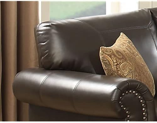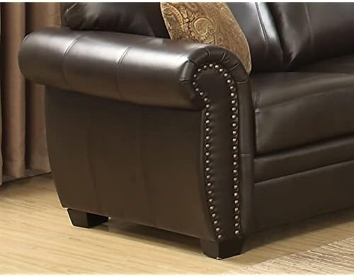 AC Pacific Louis Traditional Upholstered Leather Living Room Piece with Antique Brass Nail Head Trim, Sofa, Umber